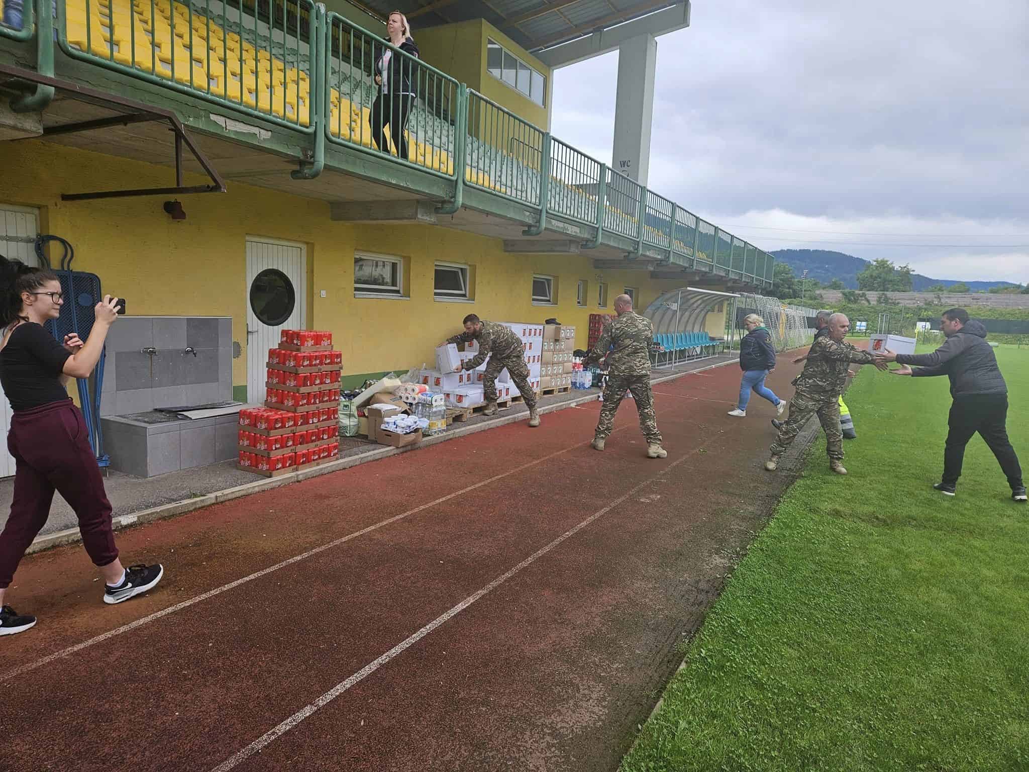 Takole so pomoč za Mežiško dolino tovorili danes v Dravogradu. Na nogometnem igrišču tamkajšnjega Športnega centra je poletel ljudem v stiski naproti helikopter Slovenske vojske. Za donacijo je poskrbela tudi izjemna družina Fratar, ki je ponovno priskočila na pomoč.