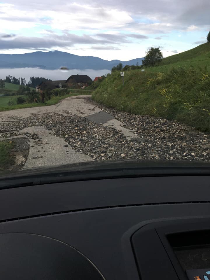 "V ponedeljek popoldan, zlasti pa v večernih urah se je nad nami vreme ponovno razbesnelo s točo in močnimi padavinami. Najhuje je bilo na Pernicah, Mlakah in Sv. Primožu, kjer so se sprožili številni plazovi, hudourniki so zadelali propuste ter poškodovali precej občinskih in gozdnih cest. Na Gortini je bil poškodovan VN vod, ki je povzročil manjši požar. Hvala PGD Muta ter obema koncesionarjema za vzdrževanje cest, ki so interventno reševali velike posledice nočnih nalivov. Po prvih in okvirni oceni je škode okrog 50.000 €," pa je na Facebooku zapisal Vošner.