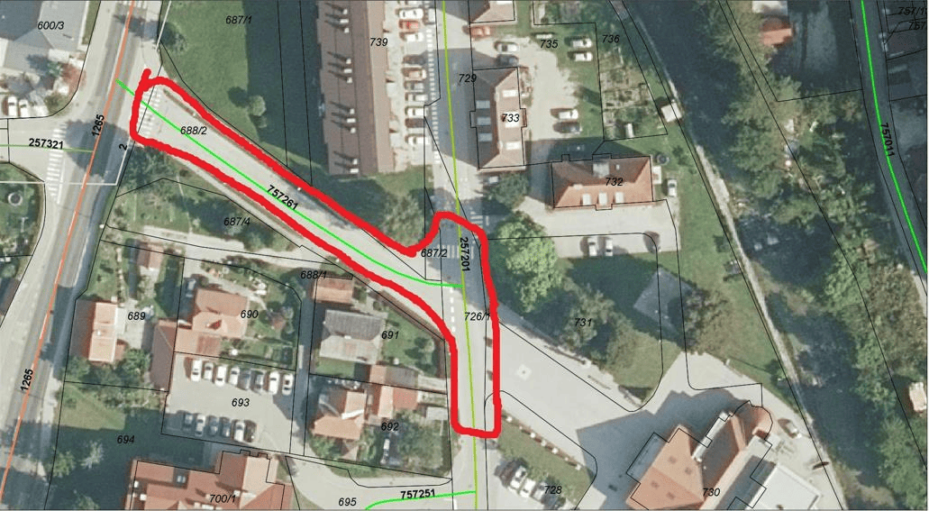 - krajevna cesta LZ257201 Knapovška – Trg 4. aprila, v dolžini cca 50 m kot prikazano na priloženi situaciji.