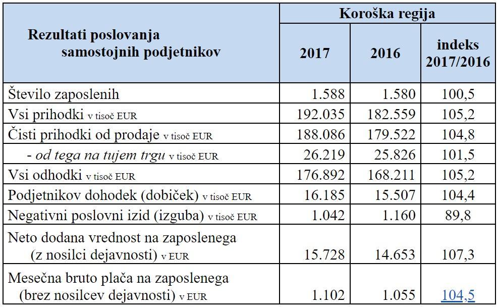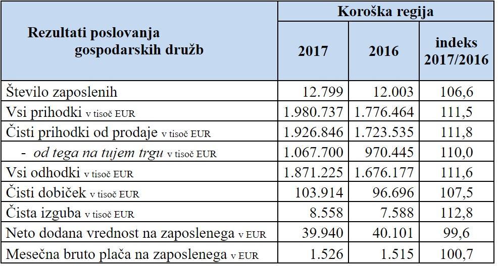 Gre za kazalnike, ki jih predstavlja AJPES kot ključne podatke, zbrane iz letnih poročil AJPES-u za leto 2017, kar na Koroškem obsega 1.261 gospodarskih družb in 1.941 samostojnih podjetnikov.