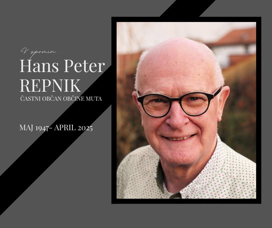 "Spoštovane občanke in občani, z globoko žalostjo vas obveščamo, da nas je v 78. letu starosti zapustil častni občan Občine Muta, prejemnik srebrnega častnega znaka svobode Republike Slovenije, nekdanji poslanec nemškega parlamenta in član nemške zvezne vlade, spoštovani gospod Hans Peter Repnik."