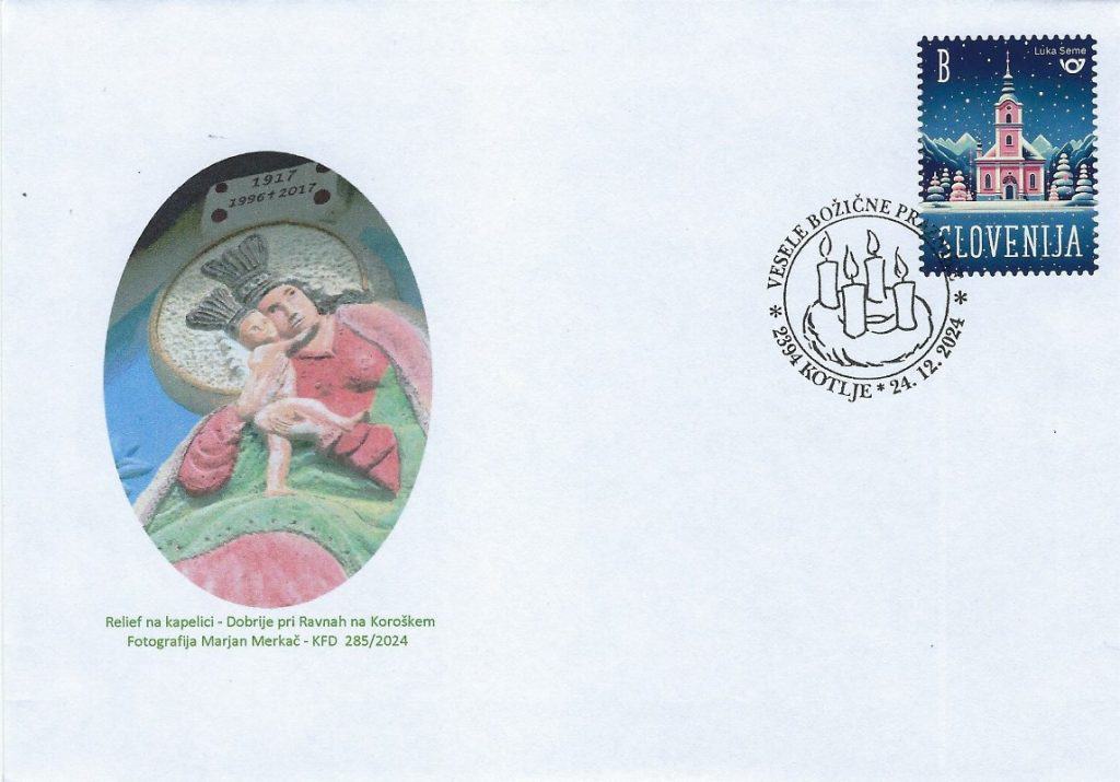 Koroško filatelistično društvo že 25 let in letos že z 26. priložnostno kuverto, opremljeno s priložnostnim poštnim žigom na temo "Božič" na zadnji delovni dan pošte Kotlje pred božičem obeležuje priljubljen ljudski in verski praznik. Vsa leta so bili motivi na poštnem žigu in ilustraciji na kuverti vzeti ali povzeti bodisi iz krščanske ikonografije ali ljudskih motivov božičnega, novoletnega in ponovoletnega časa in tudi letošnji ni izjema.