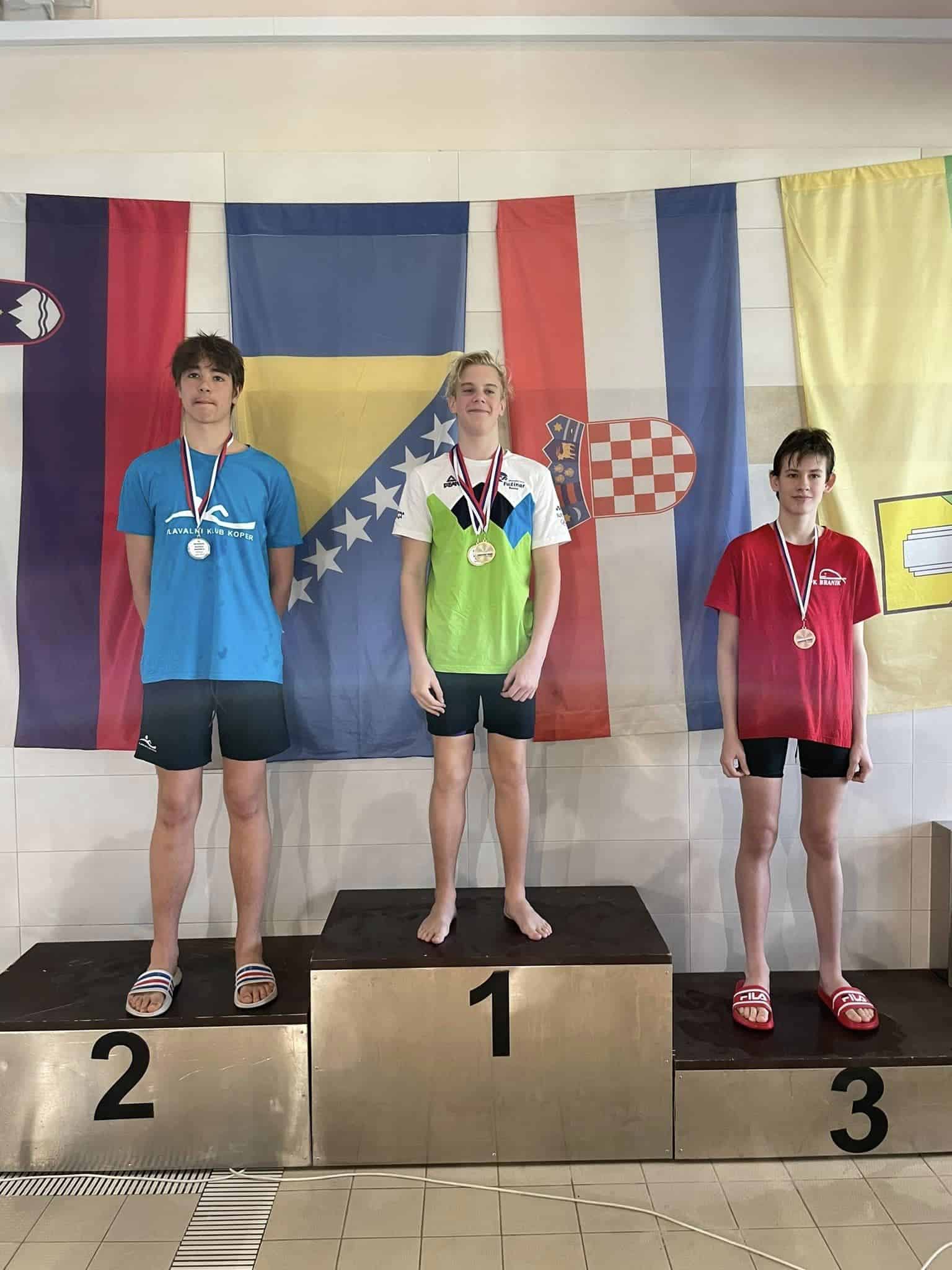 Dve zmagi je osvojil tudi Anže Kos, in sicer na 25 m delfin in 25 m hrbtno, bil pa je še drugi na 25 m prsno in tretji na 25 m prosto. Tri medalje je osvojil tudi Alexander Paternoster, srebro na 100 m prsno ter dva brona na 100 m delfin in 100 m mešano. Bron je osvojil tudi Taj Šumah na 50 m hrbtno.