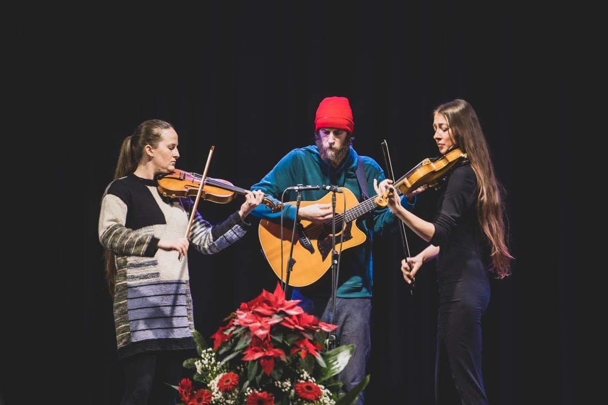 Nadaljevanje slovesnosti je pospremil glasbeni program zasedbe Hedera vento, ki glasbeni prostor bogati od leta 2013. V njihovem repertoarju se najpogosteje znajdejo njihove unikatne perspektive ljudskih pesmi, avtorska glasba ter uglasbljena poezija. Zasedbo sestavljajo Aljaž Lipuš na kitari, Urša Lorber na violini in mandolini ter Mojca Kamnik na violi in mandolini, vsi trije pa skladbe bogatijo tudi z večglasnim petjem. Lani 22. decembra so izdali EP, prvega v nizu treh načrtovanih digitalnih izdaj, ki predstavlja priredbe ljudskih pesmi pod naslovom Korenine so, saj koroška kulturna dediščina za zasedbo predstavlja temelj, ki za glasbenike presega sodobne žanrske konglomerate in meje v vseh pomenih besede.