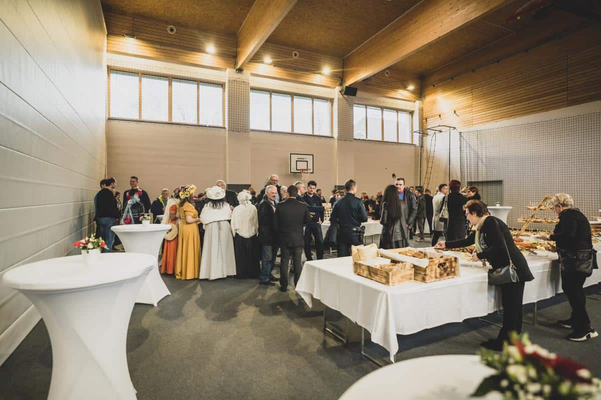 Ker bo Kulturni center še nekaj časa čakal na ponovno obuditev in sanacijo po poplavah, se je letošnji sprejem odvijal v večnamenski dvorani Kotlje, kjer so povabljene pozdravili in sprejeli župan Občine Ravne na Koroškem dr. Tomaž Rožen, skupaj s podžupanoma Petrom Stočkom in Andrejem Erjavcem, poslancem državnega zbora RS Janijem Prednikom ter direktorico občinske uprave mag. Vlasto Kupljen.