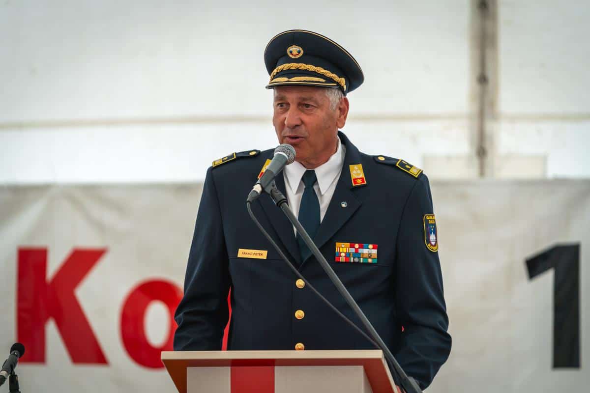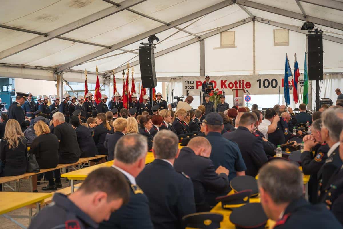 Po paradi se je slavje nadaljevalo pod šotorom, kjer je potekala osrednja slovesnost ob jubileju PGD Kotlje.