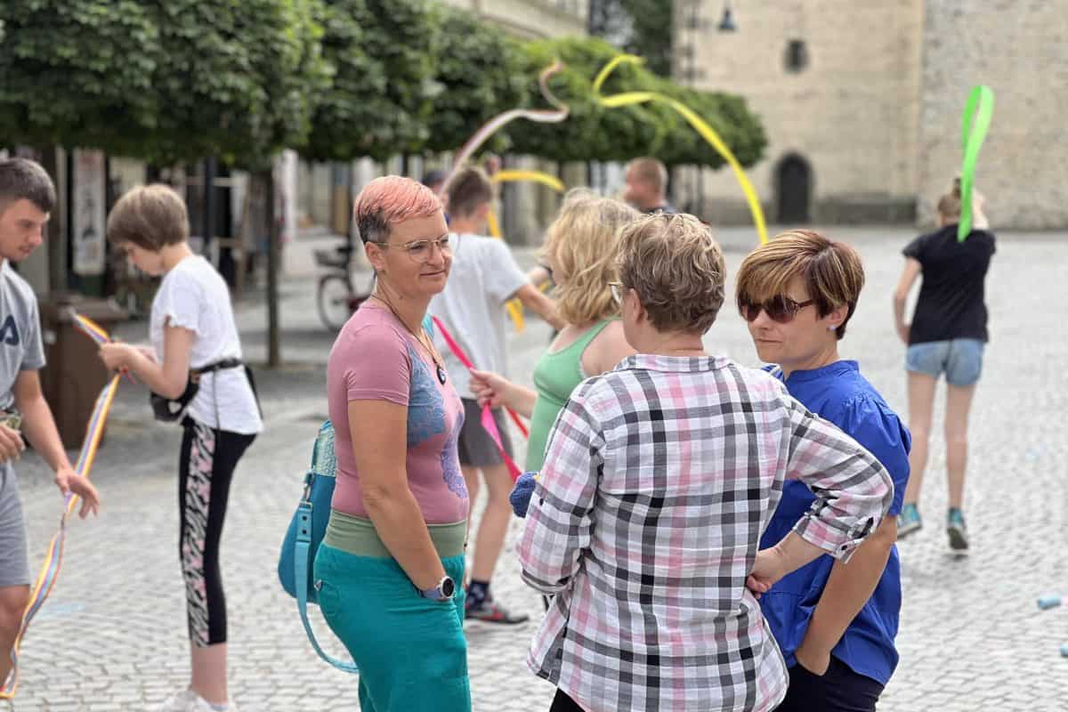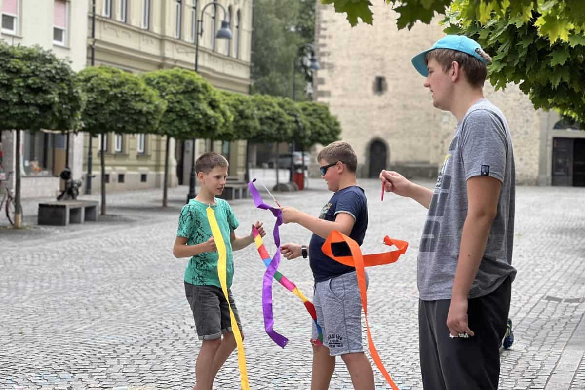 Danes se pred kavarno Ars Caffe odvija zanimiv dogodek, ki so ga učenci Tretje osnovne šole poimenovali "Pozdrav poletju".