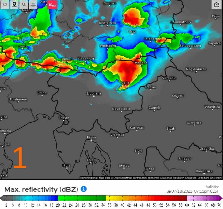 Predvsem v severni Sloveniji bodo nastajale močnejše nevihtne celice, ki lahko v pasih prepotujejo večje razdalje. Nevihtne celice se bodo na območju avstrijske koroške okrepile in potovale v smeri severa in severovzhoda Slovenije. Nevihte bodo tako zajele celotno območje Koroške in se premikale naprej proti severozahodu. Predvidevajo, da lahko prve nevihte pričakujemo okoli 20. ure.