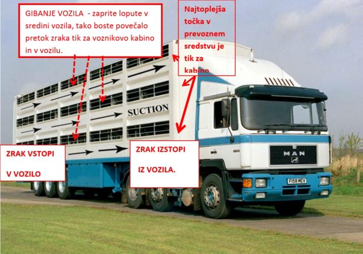 Kratka navodila o naravnem gibanju zraka v cestnih vozilih za prevoz živali. Uporaba za vozila brez avtomatičnega ventilacijskega sistema. Ko se vozilo GIBA / JE V VOŽNJI zaprite srednje lopute, tako boste povečali pretok zraka tik za kabino, kjer je najtoplejše.