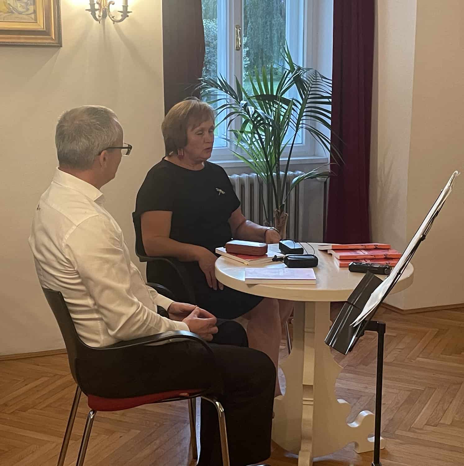 Pogovor o knjigi je moderiral Robert Preglau, vodja Območne izpostave JSKD Dravograd, za glasbeno popestritev dogodka pa je poskrbela Martinina vnukinja Izza Zala Čebul na flavti.