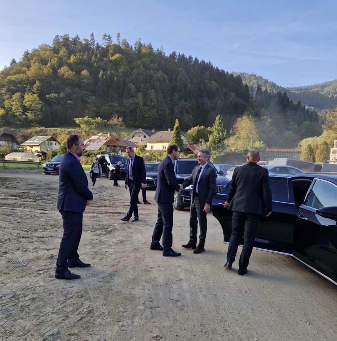 Premier Golob se po ogledu poteka del po ujmi na reki Meži v naselju Dobrije, v Žerjavu udeležuje še slavnostne seje črnjanskih občinskih svetnikov. Ob obisku je izrazil prepričanje, da bo več mehanizacije v prihodnje tudi v naših koncih, potem ko je, kot je dejal, ministrica Bratušek prevzela koordinacijo "celote, tako vodne kot cestne infrastrukture".