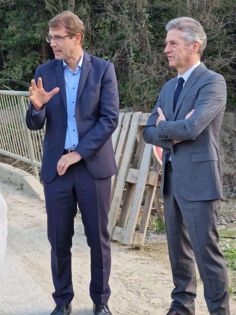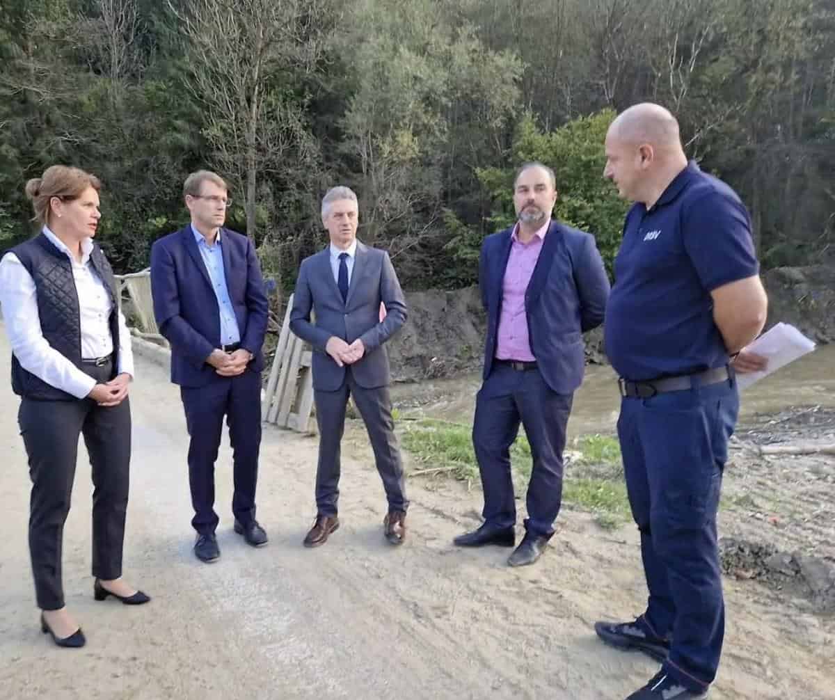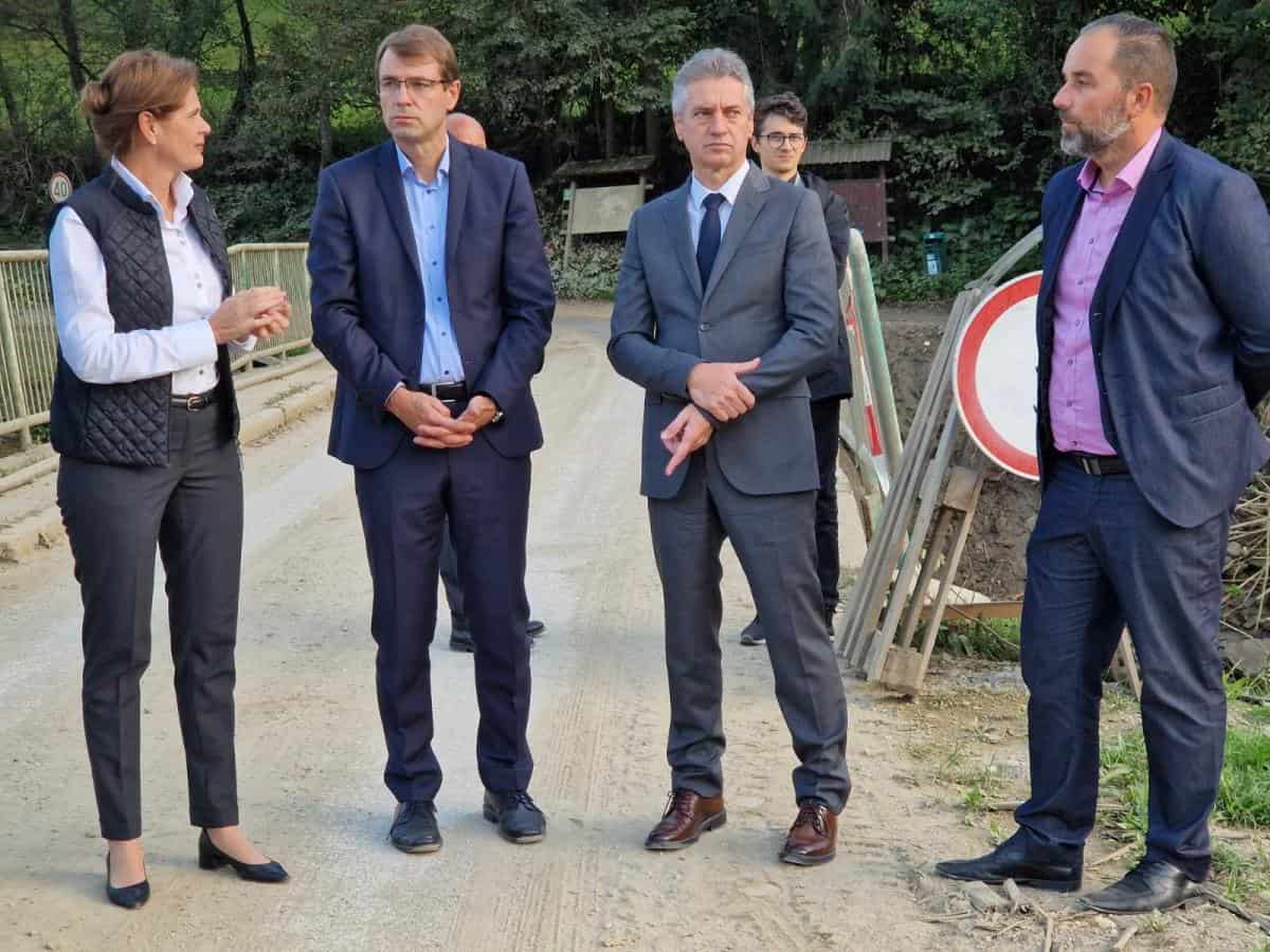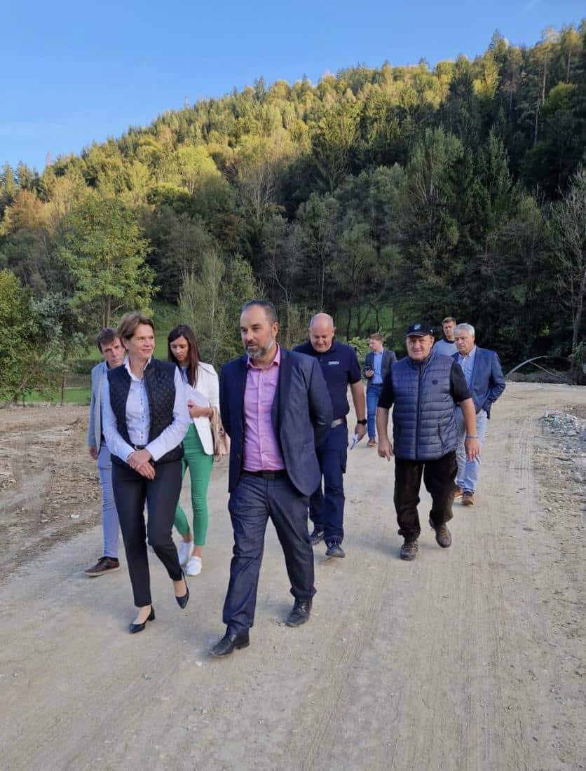 Ogledal si je tudi napredek del na območju Dobrij, kjer je katastrofalna ujma 4. avgusta povzročila obsežno opustošenje.