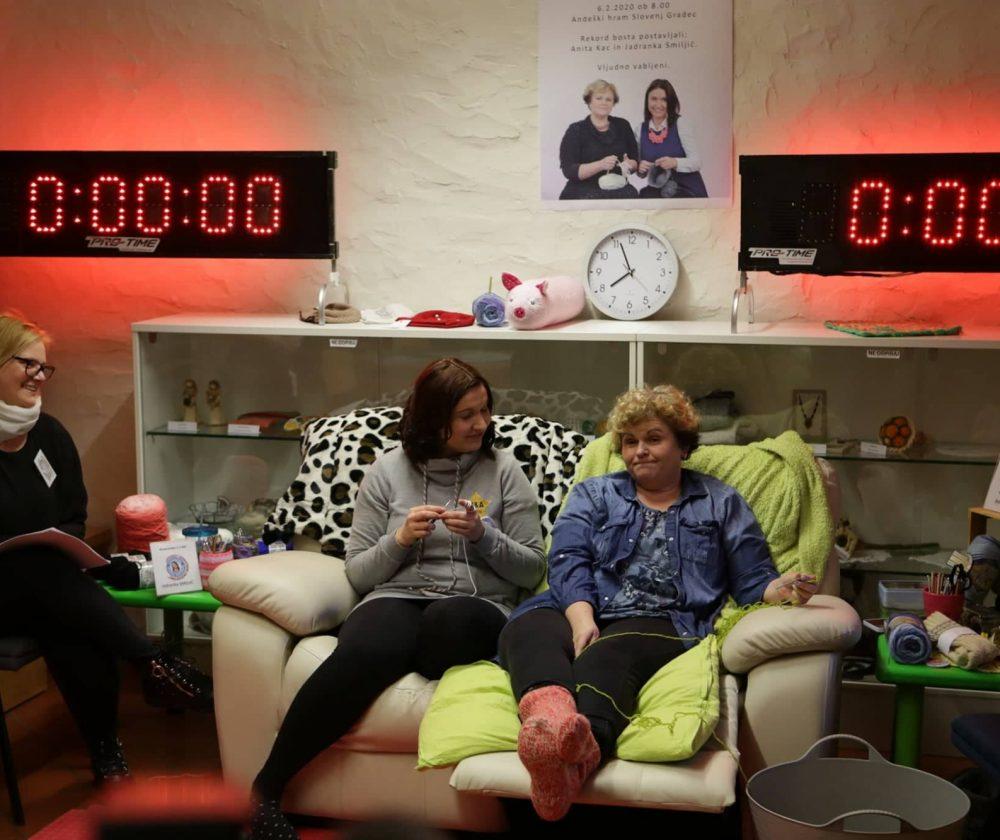 Ko so kazalci včeraj na uri pokazali 8.00, sta se koroški pletilji, Anita Kac iz Šentjanža pri Dravogradu in Jadranka Smiljić iz Slovenj Gradca v slovenjgraškem Andeškem hramu, s kvačkami v rokah podali v lov za Guinnessovim rekordom v neprestanem kvačkanju. Na našem Youtube kanalu pa ste ju v živo lahko spremljali tudi vi.