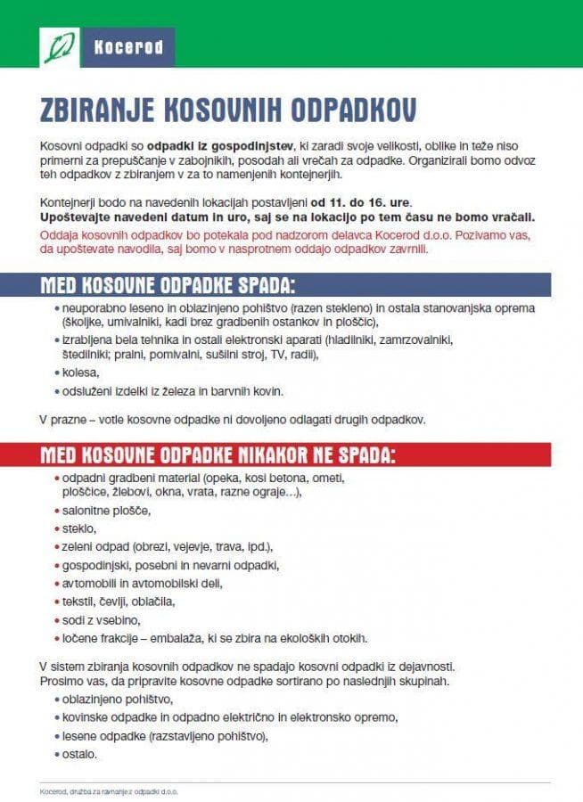 V sistem zbiranja kosovnih odpadkov ne spadajo kosovni odpadki iz dejavnosti.