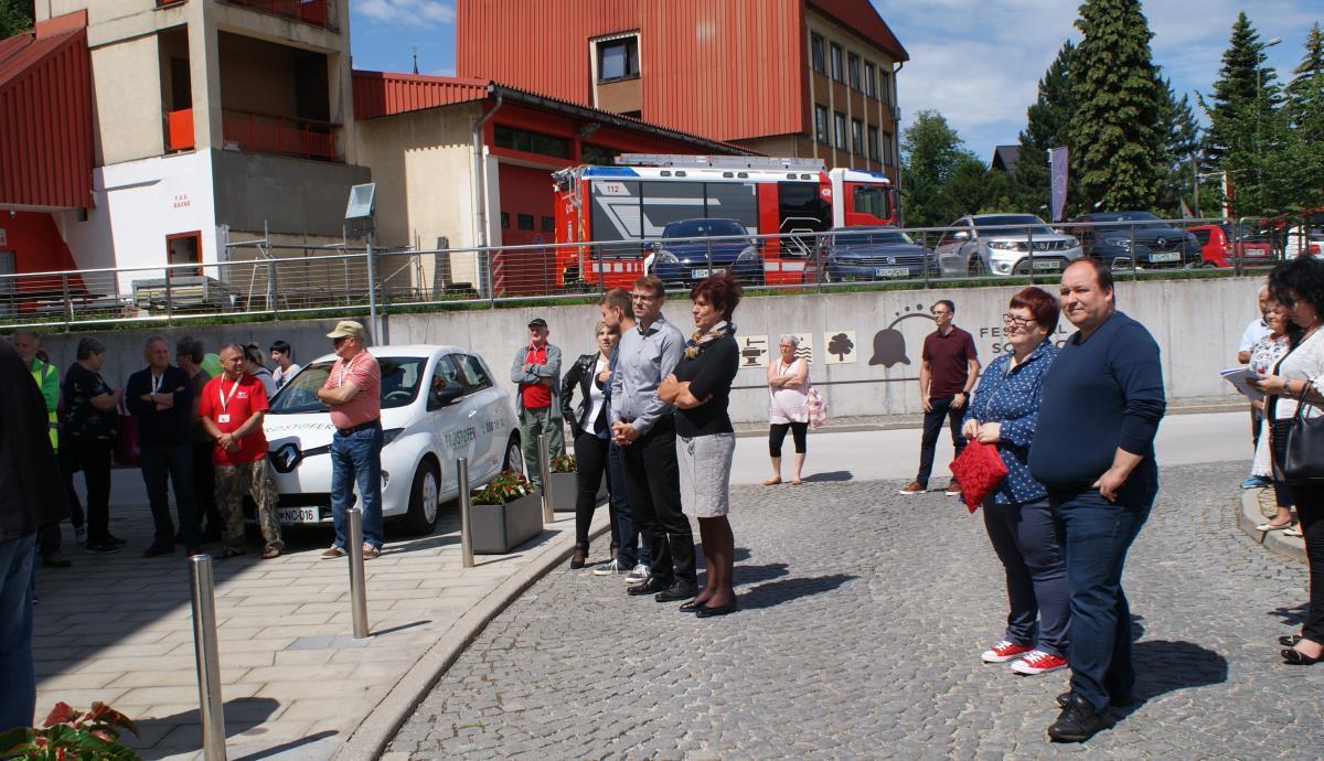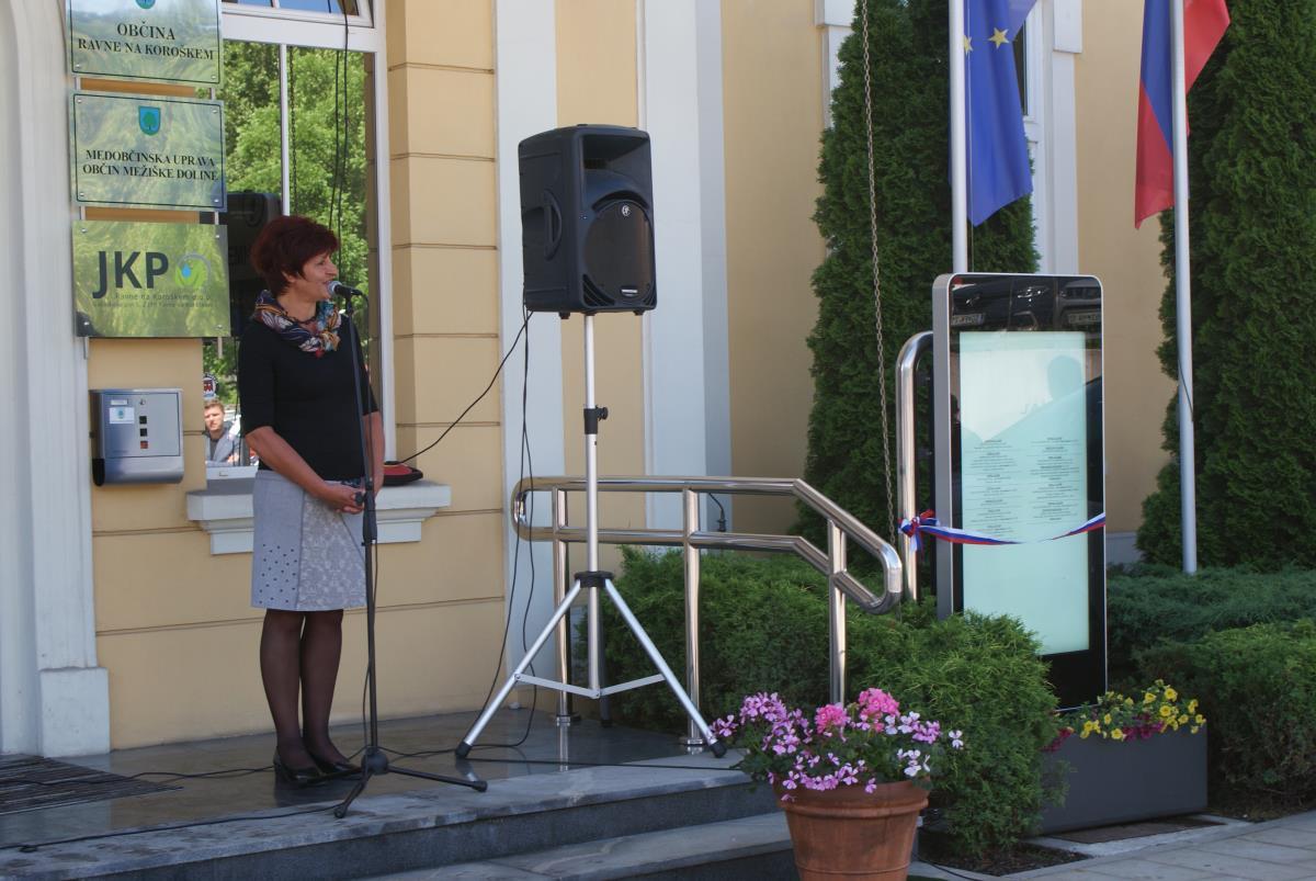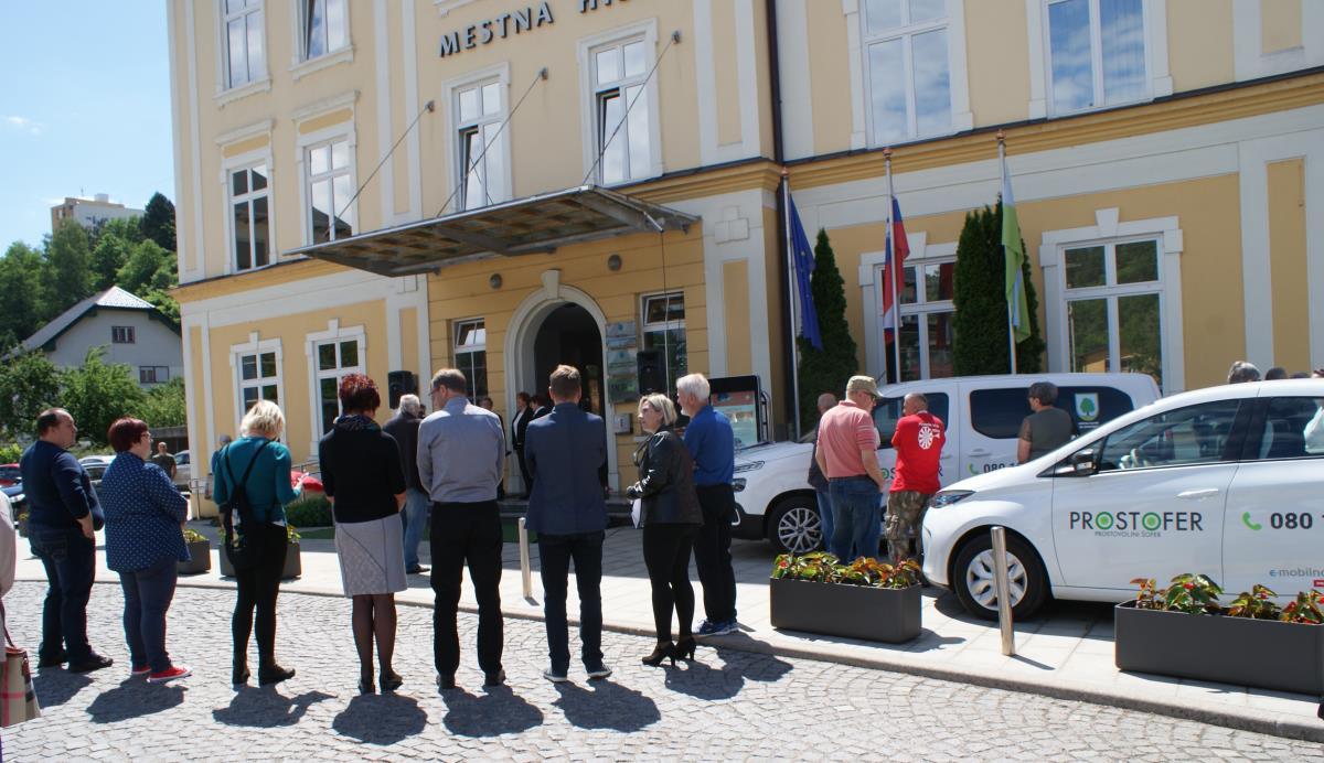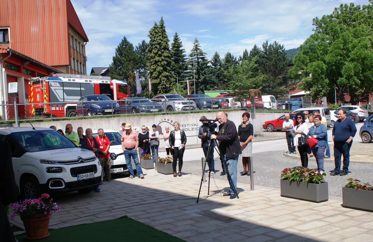 V okviru Projekta "Brezplačni prevozi za starejše in invalide" je v petek na Ravnah pred Mestno hišo potekal prevzem novega vozila, hkrati pa tudi otvoritev zaslona za digitalno obveščanje.