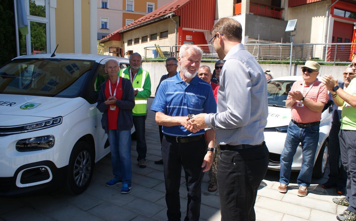 Vozilo je slovesno predal ravenski župan dr. Tomaž Rožen, ki je ključe avtomobila izročil predsedniku DU Ravne na Koroškem Jožetu Predniku. Kulturni program so sooblikovale pevke Ženske vokalne skupine Deteljica KD Prežihov Voranc ter učenec Glasbene šole Ravne na Koroškem Aljaž Reiter, ki je zaigral na diatonično harmoniko.