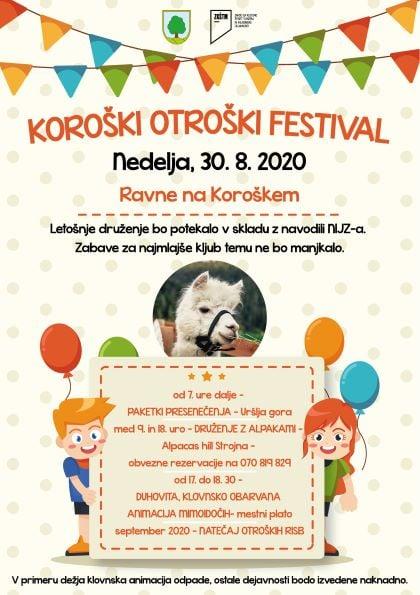 Festival se zaradi trenutne situacije seli iz Grajskega parka na okoliške hribe, vasi in v središče Raven. Druženje pa bo potekalo v skladu z naovdili NIJZ. "Aktivne nadobudneže, ki se bodo ta dan odpravili na Uršljo goro, bodo na osvojenem vrhu čakali paketki presenečenja. Na mestnem platoju bo mimoidoče otroke navduševal klovn s svojimi norčijami. Družine pa lepo povabljene, da zadnjo počitniško nedeljo preživijo na čudoviti Strojni v družbi alpak," je pred nedeljskim dogajanjem povedala vodja festivala Darja Krevzelj.