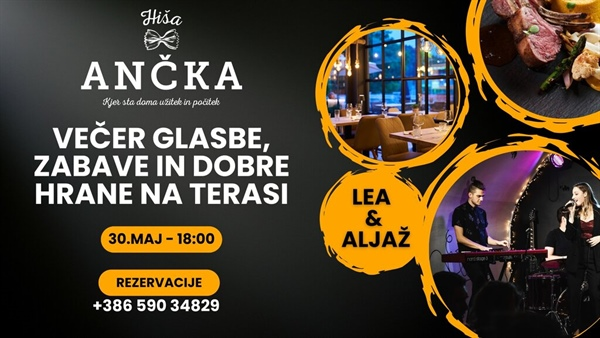 Prvi dogodek bo že v petek, 30. maja. V sodelovanju z glasbenim centrom Balu vas vabijo, da se jim pridružite ob večeru žive glasbe, dobre hrane in prijetnega druženja. Za čarobno vzdušje bosta poskrbela Aljaž in Lea, ki nas bosta s svojo glasbo popeljala v sproščen in prijeten večer.