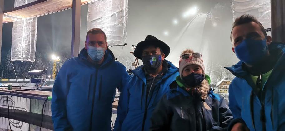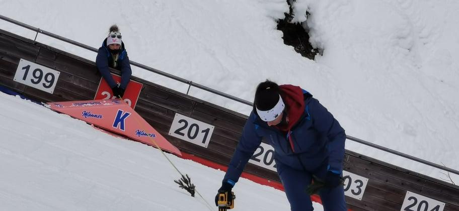 Krajnc doda, da ekipo, ki pomaga pri pripravi letalnice sestavlja 140 ljudi. Pri tem omeni, da imajo med teptači tudi dve dekleti, Tanja Žerjav-Čipka in Katja Kobentar, ki je tudi pomočnica vodje teptačev. Dekleti sta tudi zastavonoši. "Za to moraš biti zelo pogumen, da se z zastavo spustiš po največji letalnici na svetu," pripomni.