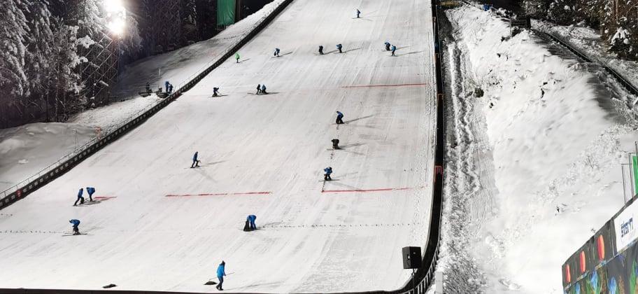 Sogovornik pojasni, da je ratrakist Jure Fenz njihov nepogrešljiv člen in na letalnici preživi tudi največ ur. Fenz je začel pripravljati doskočišče z ratrakom že 20. novembra. "Mi pa vedno začnemo kakšen teden pred tekmo, odvisno je od vremenskih razmer," razloži Krajnc in doda, da so imeli letos veliko dela z zapadli snegom in so morali prej očistiti vse poti okoli letalnice, "potem smo se pa lotili tudi naše lepotice."