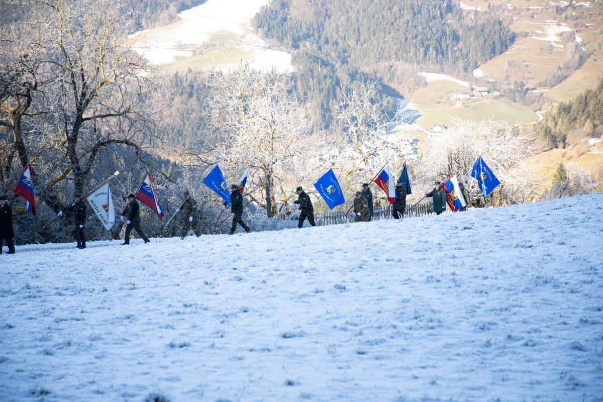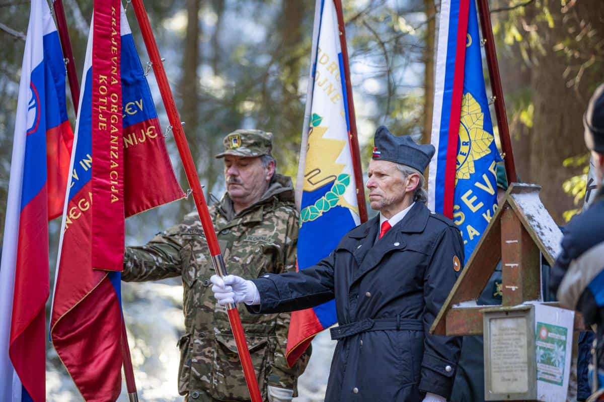 Venec so k spomeniku položili predsednik Koroškega domoljubnega društva Franjo Malgaj Vladimir Ovnič, predstavnik Združenje veteranov vojne za Slovenijo, območja Mežiške doline Zdravko Moličnik ter predstavnik Policijsko veteranskega društva Sever za Koroško Željko Kljajić.