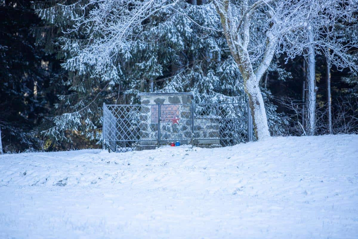 Na tem mestu, v gozdu nad cerkvijo sv. Neže, stoji spomenik, zasnovan iz sedmih grobo obdelanih granitnih kamnov z imeni pobitih talcev: domačina Ivana Menarta - Čiča, Alojza Kavtičnika - Toma, Pavla Stropnika, Ferdinanda Gostenčnika - Brka in njegovega sina Ferdinanda, Andrejčka Kotnika - Juričevega Drejčka ter neznanega partizana. Letošnje leto se spominjamo osemdesete obletnice tega zločina.