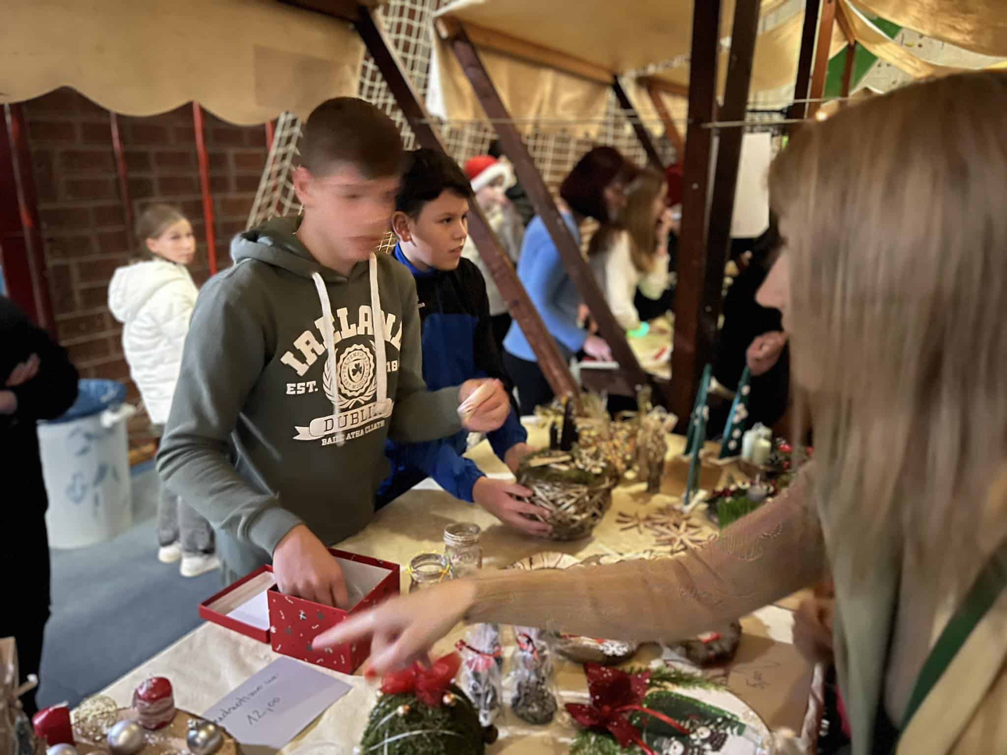 Po končanem kulturnem programu se je začel pričakovan prednovoletni bazar, na katerem so se razgrnili izdelki pridnih rok otrok. Obiskovalci so imeli priložnost kupiti unikatna božična darila, okraske, voščilnice in še mnogo drugega. Otroški izdelki so izžarevali ustvarjalnost in trud, ki so ga vložili v svoje projekte.