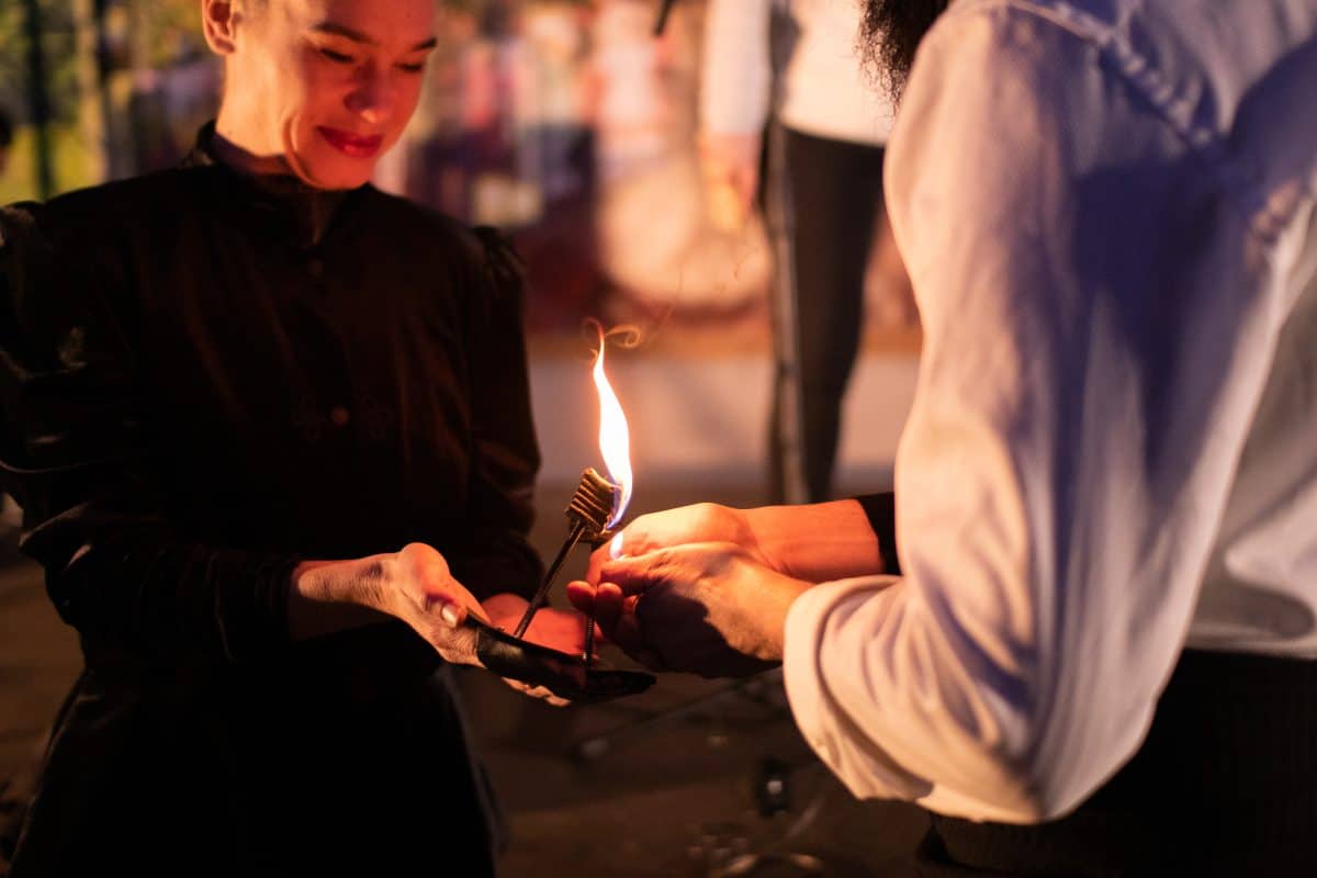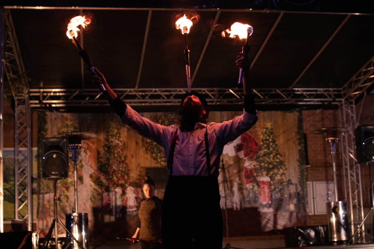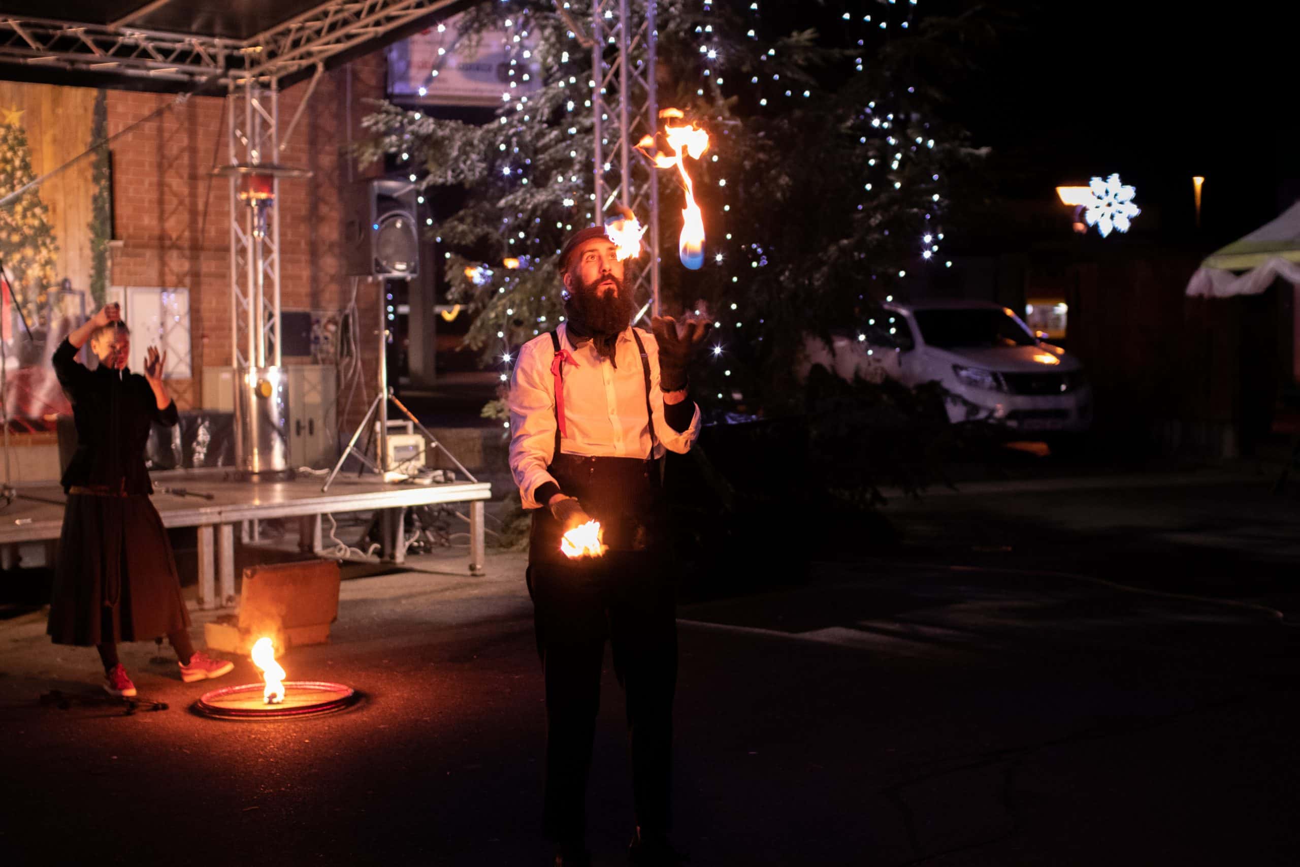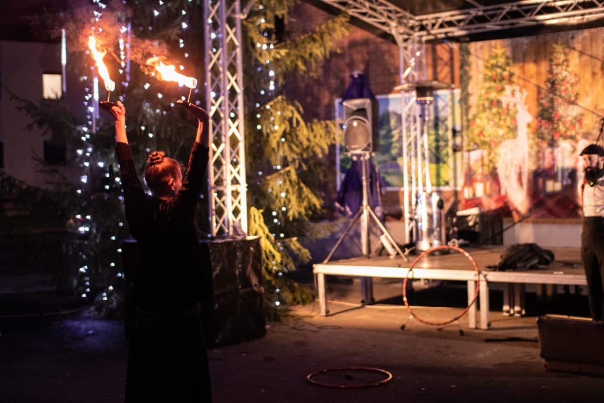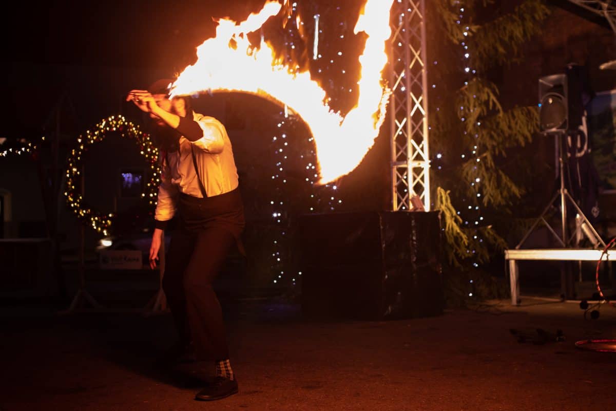 Ognjeni šov "Prometej" ocenjujeta 2 umetnika. Umetniki delajo na lastni glasbi in čas izvedbe je trajal 15 min. Ognjena predstava "Prometej" je avtorsko delo članov društva "Razbibriga".