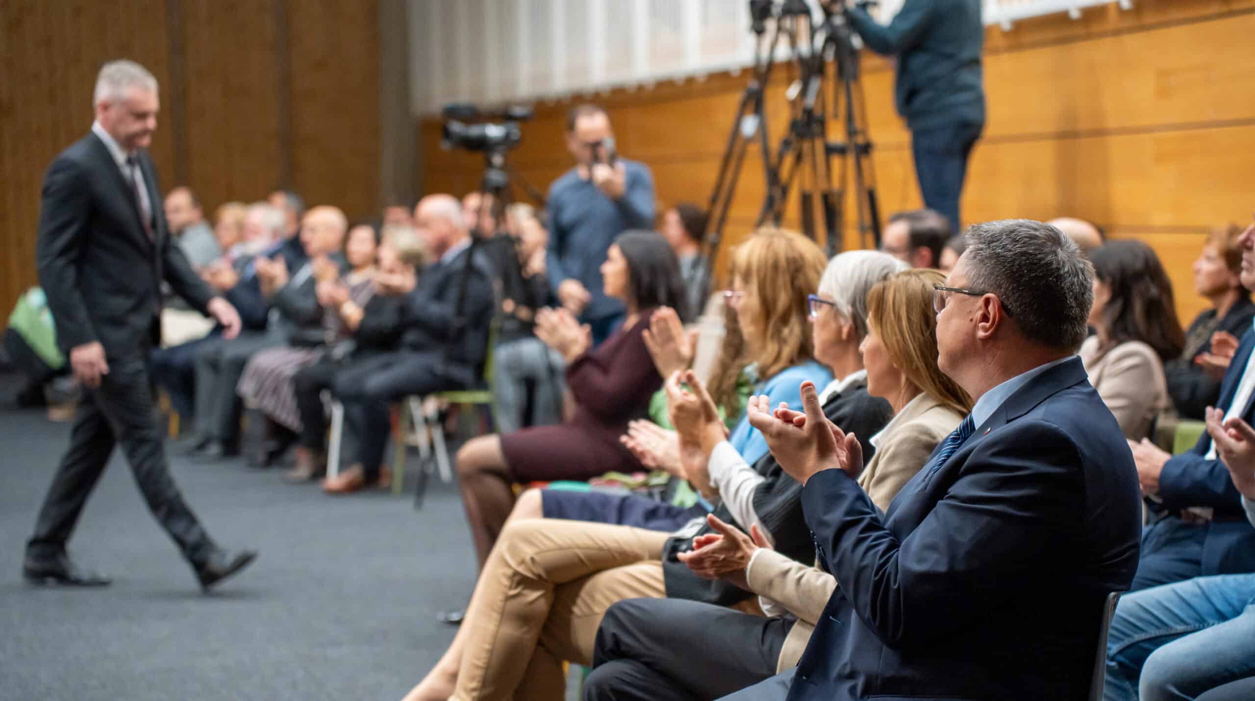 Aktualna mednarodnopolitična in varnostna situacija, predvsem v luči vojne v Ukrajini in zadnjega konflikta na Bližnjem vzhodu, kar kliče po skorajšnji generalni skupščini mest, je v nagovoru dejal slovenjgraški župan Tilen Kluger. »Kot mesto glasnik miru se na te razmere seveda moramo odzivati, vpletene pa pozvati k razumu, mirnemu razreševanju konfliktov povsod po svetu, skozi javnomnenjski pritisk pa lahko tudi mestne oblasti nacionalne deležnike pozovejo k proaktivnejšemu pristopu reševanja konfliktov in sprte pozovejo za zeleno mizo. Tako smo storili ob začetku ukrajinske in tudi sedaj, bližnjevzhodne krize. A čeprav so vedno prve žrtve vojn prav mesta, moramo biti realisti pri dojemanju pristojnosti mest in našega političnega vpliva na razreševanje konfliktov. Na kriznih žariščih lahko župani običajno žal zgolj gasimo požare, ki jih zanetijo drugi. Rešujemo in ščitimo civilno prebivalstvo pred humanitarnimi katastrofami, naš poziv k miru pa žal običajno ostane preslišan.«
