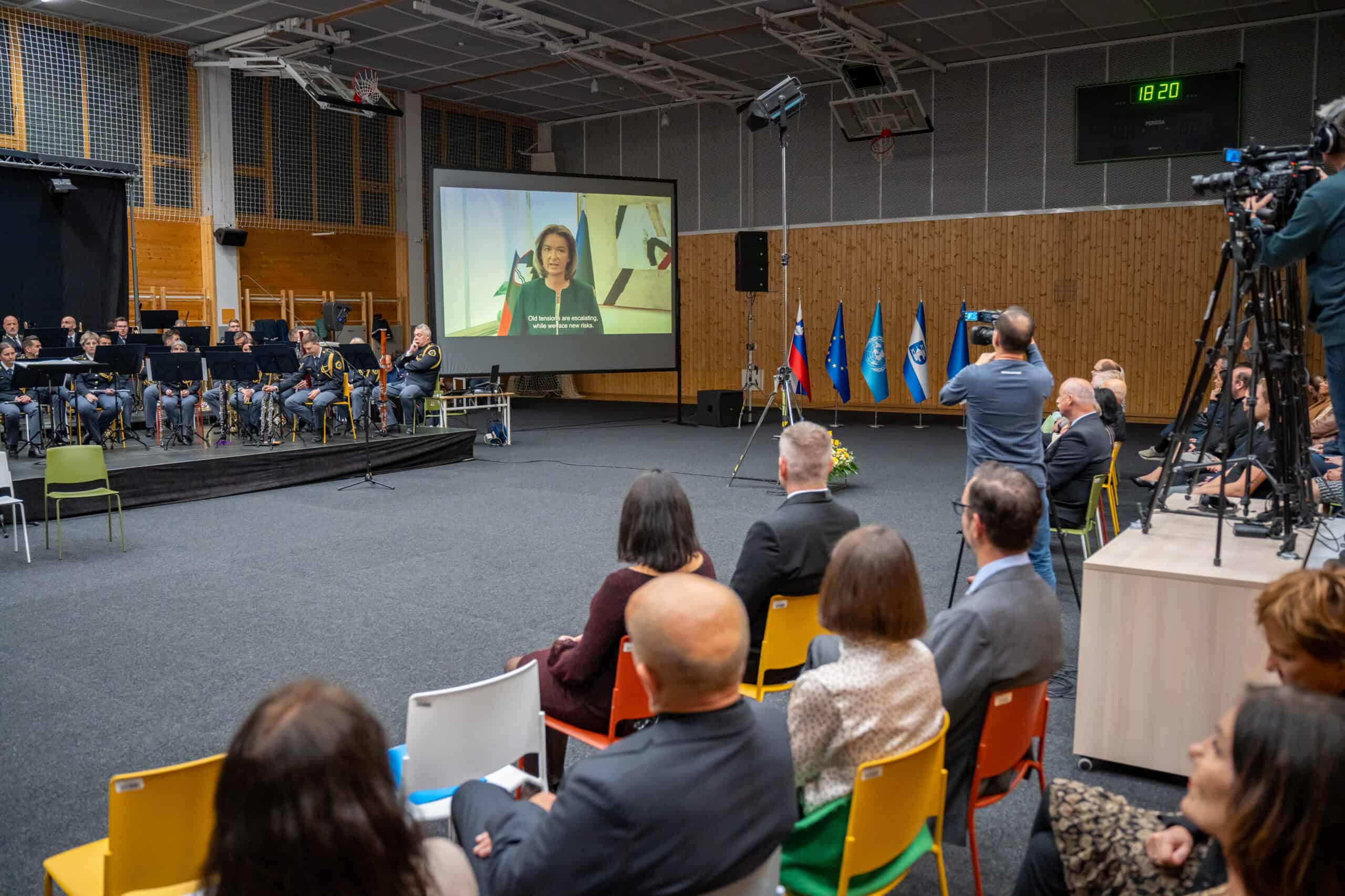 Trenutnih razmer na vojnih žariščih se je v video nagovoru zbranim dotaknila tudi ministrica za zunanje zadeve Tanja Fajon. »Varnostna tveganja bodo obstajala, krize bodo tu, a verjemite mi, da v kolikor OZN-a danes ne bi bilo, bi ga človeštvo izumilo. Soočamo se s kompleksnimi varnostnimi vprašanji, kot so podnebne spremembe, pomanjkanje vode, razvoj novih tehnologij in energetska nezanesljivost, ki zahtevajo združeno in takojšnjo akcijo, da zaščitimo prihodnje generacije.« Zunanja ministrica je dejala, da je pred Slovenijo v vlogi nestalne članice Varnostnega sveta odgovorna vloga, ki se je bomo lotili s povezovalnim, transparentnim in odgovornim pristopom. »Dosledno bomo spoštovali mednarodno pravo in se zavzemali za varstvo človekovih pravic. Prepričana sem, da lahko prevzamemo vidnejšo vlogo v sistemu Združenih narodov in tako soustvarjamo k rešitvam naravnano globalno agendo. Med drugim je to organizacija, kjer se glas manjših držav mednarodne skupnosti sliši.«