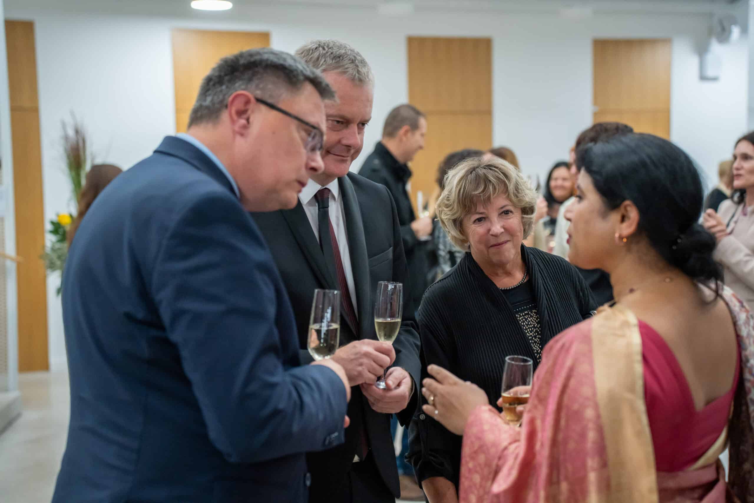 Slovesnosti so se med drugimi udeležili: Njena ekscelenca Namrata S. Kumar veleposlanica Indije v Sloveniji in Brizida Nina namestnica veleposlanika Albanije v Sloveniji, častna generalna konzulka Danske in Norveške Nina Šelih in Nataša Pipan Nahtigal ter vršilka dolžnosti generalne direktorice Ministrstva za zunanje in evropske zadeve Božena Forštnarič Boroje. Med gosti je bil tudi poslanec v Državnem zboru Republike Slovenije in podpredsednik odbora za zunanjo politiko Dušan Stojanovič, podžupana, častna občana ter svetnice in svetniki Mestne občine Slovenj Gradec.