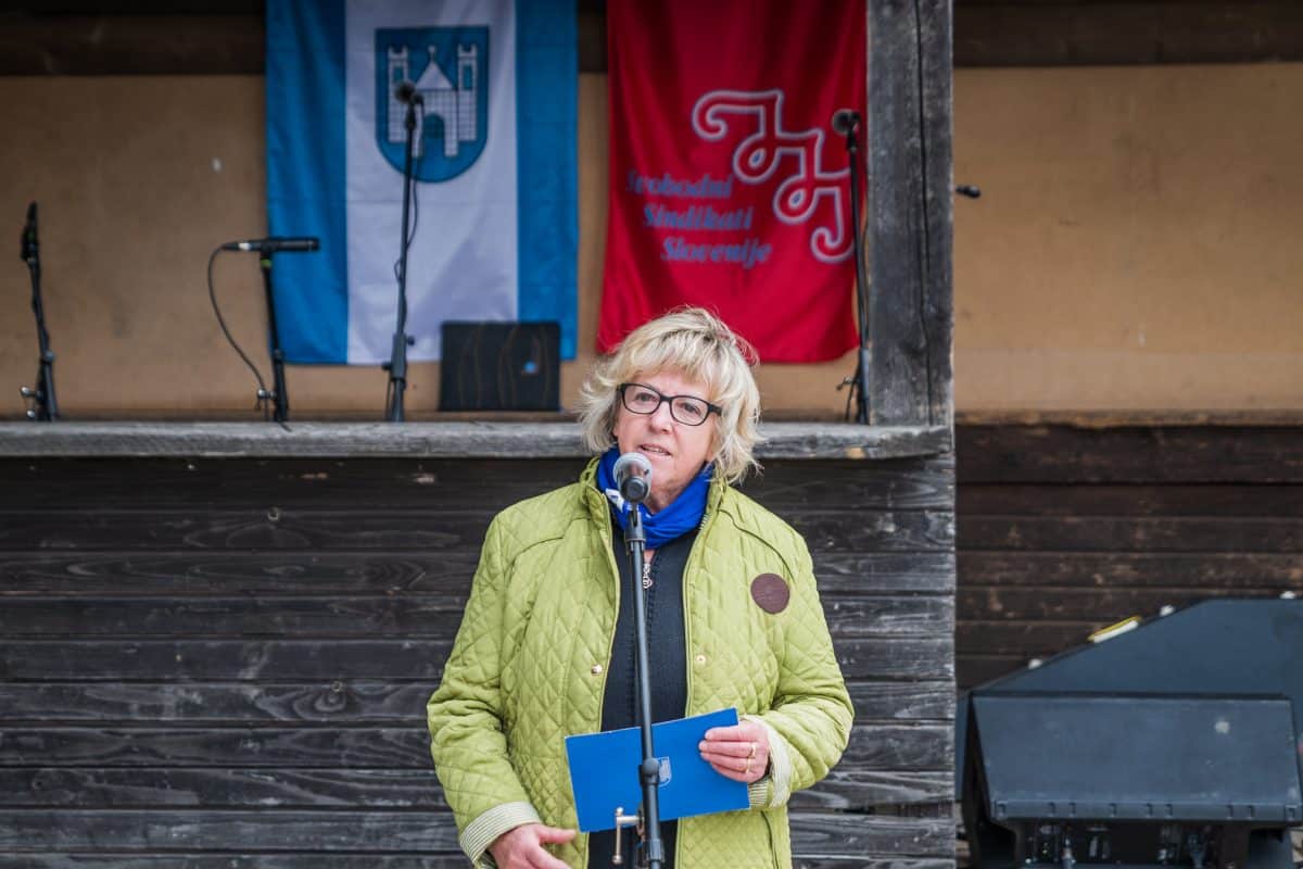 Tako so se tudi danes, 1. maja 2024, ljudje zbrali ob 11.00 uri, ko je zbrane nagovoril predstavnik Sindikata upokojencev Slovenije Tomaž Kšelo ter podžupanja Slovenj Gradca Martina Šisernik.