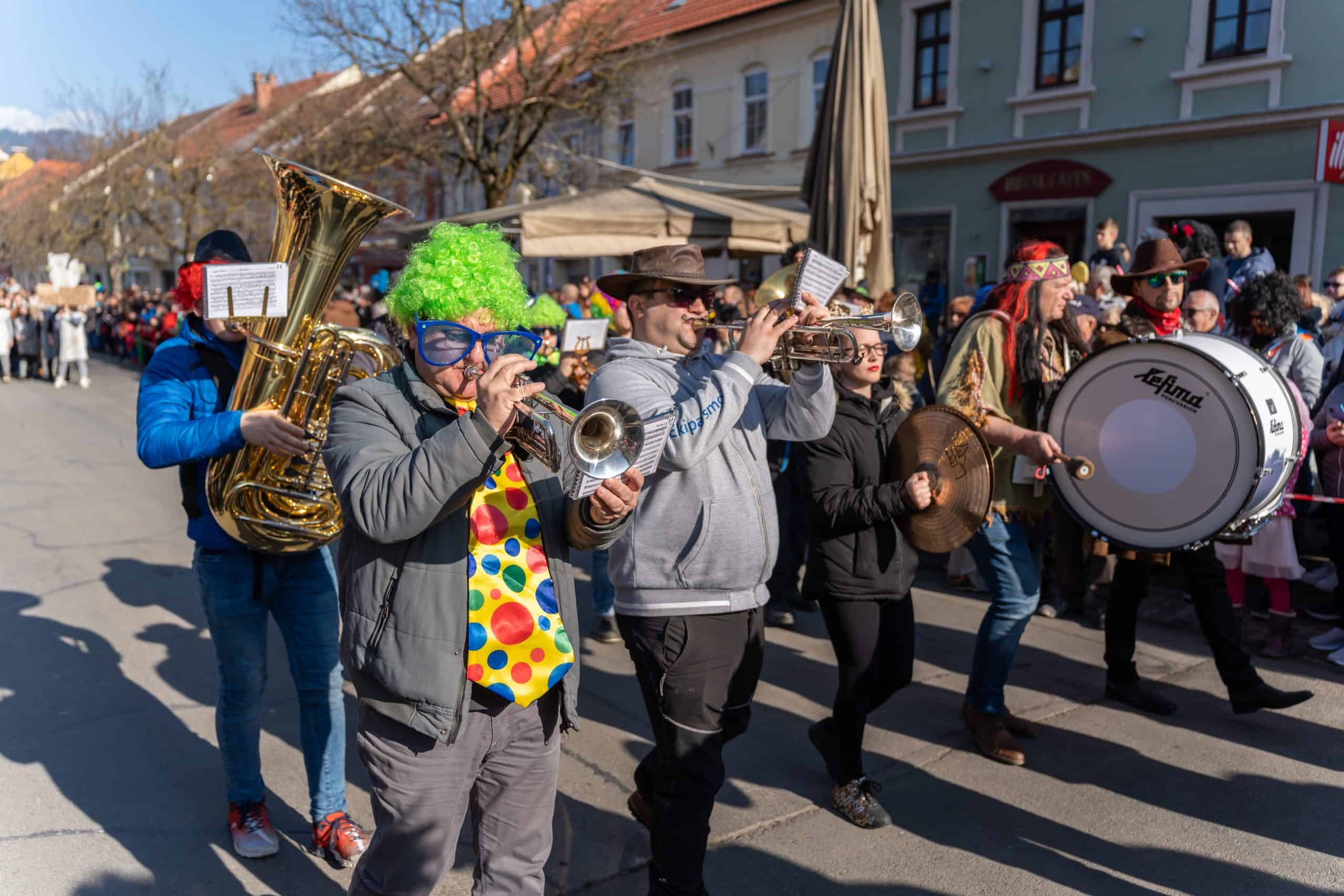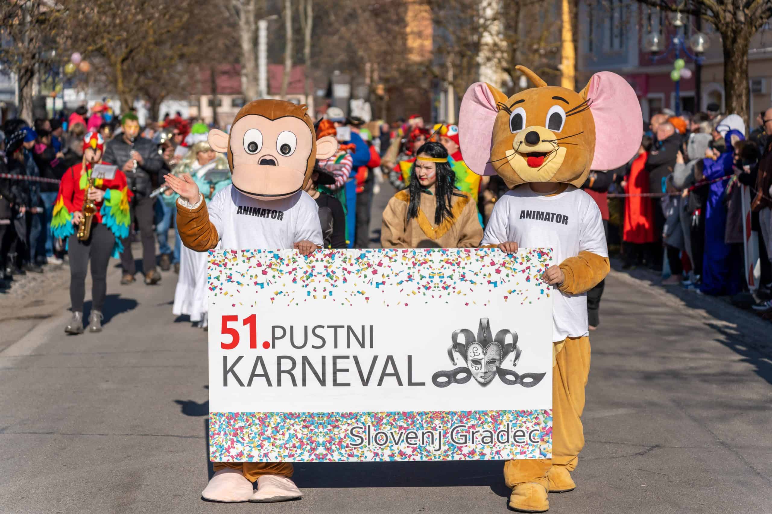 Pustni karneval v Slovenj Gradcu je potekal v prešernem razpoloženju ob zanimivih, šegavih, norčavih in igrivih pustnih šemah. Otvoril ga je Pihalni orkester Slovenj Gradec, ki je ponos mesta glasnika miru.