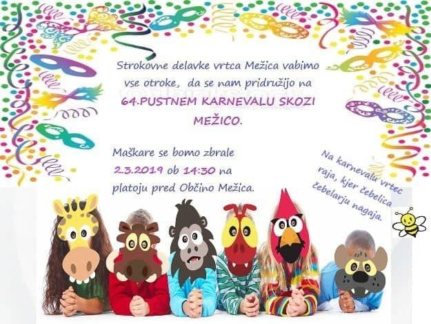 soboto, 2. 3. 2019, s pričetkom ob 14. uri. K sodelovanju vabijo tako skupinske maske kot posameznike, ki se bodo predstavili pred vaškim centrom nakar sledi zabava pred in v kulturnem domu. Od 16.00 do 21.00 vas bo zabaval
