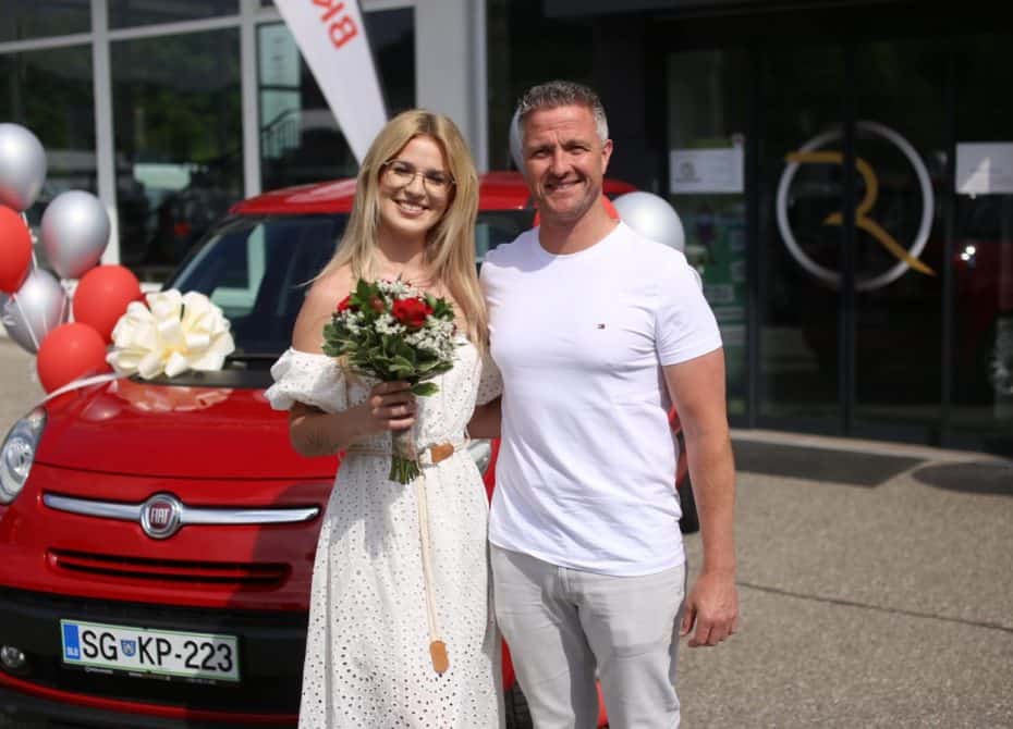 Ključe od avtomobila, ki ga bo lahko brezplačno uporabljala eno leto, je svetlolasi lepotici v roke predal brat slavnega Michaela Schumacherja, Ralf Schumacher, tudi poslovni partner podjetja Robeta, ki je leta 2018 v centru Slovenj Gradca odprlo vrata najsodobnejšega servisno-prodajnega centra počitniških vozil in kamping opreme Rovando.
