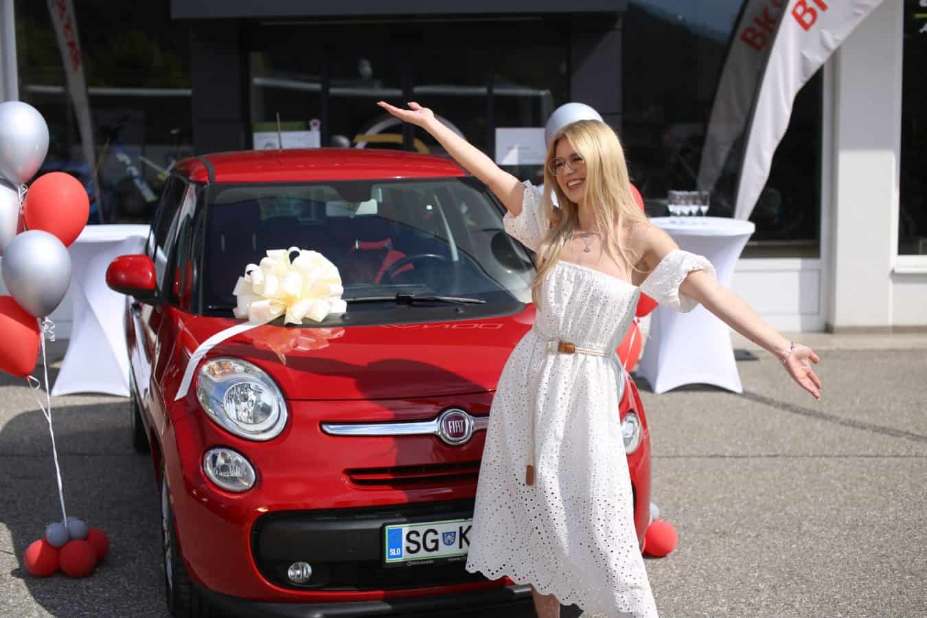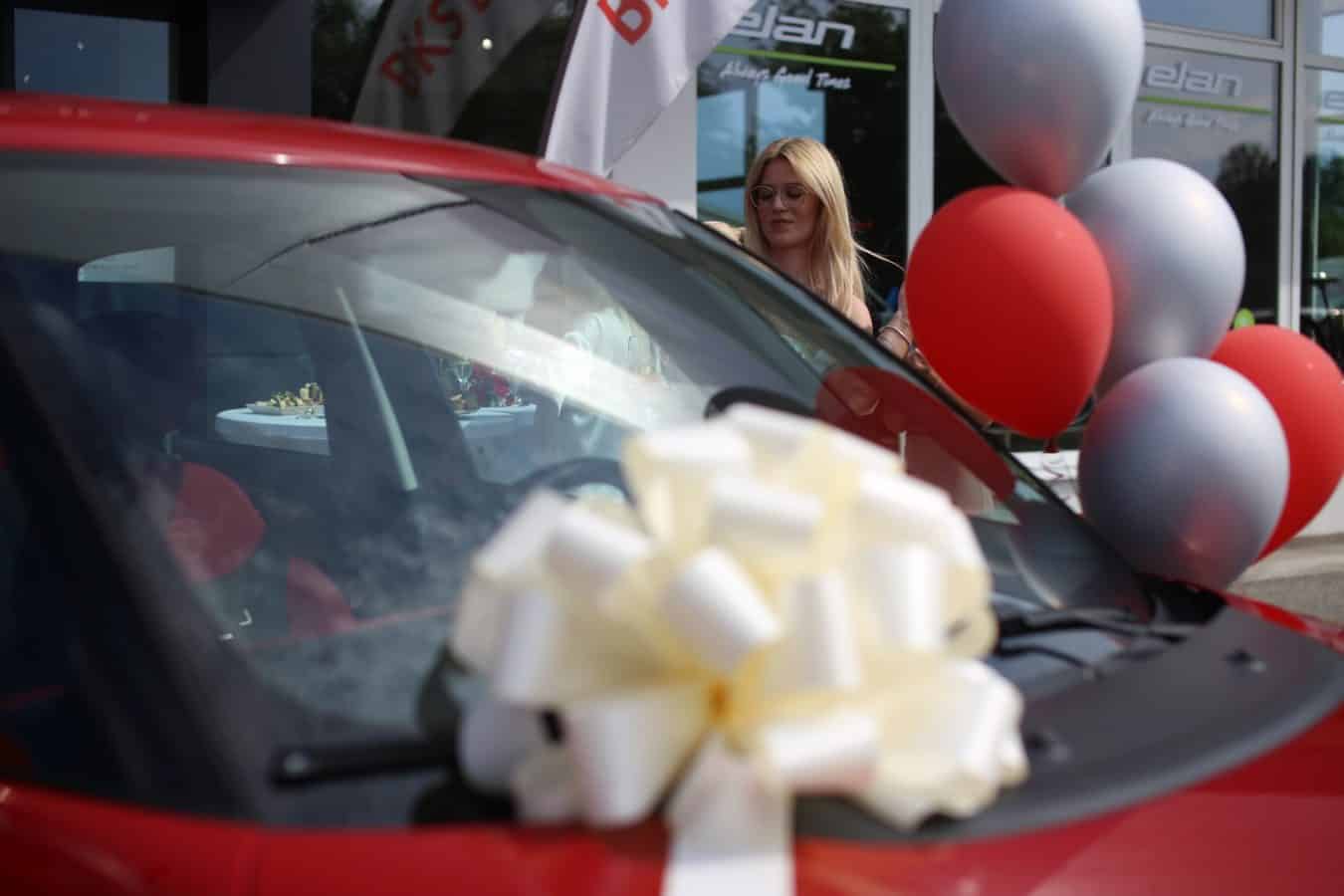 VIDEO: Izjava srečne Tjaše Kramarič po prevzemom avtomobila pred centrom Rovando v Slovenj Gradcu