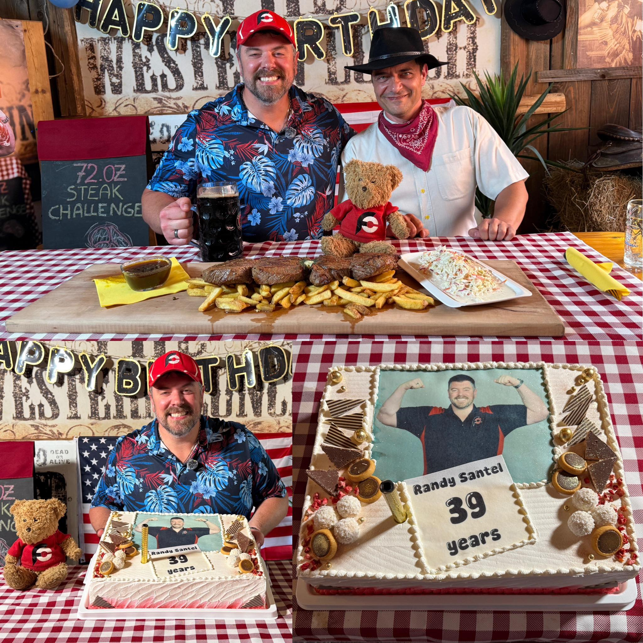 V torek, 24. junija 2025, se je tega izziva lotil nihče drug kot Randy Santel , svetovno znani profesionalni jedec iz ZDA z več kot dvema milijonoma sledilcev. Prav na svoj 39. rojstni dan je obiskal West Saloon in se spopadel z resno preizkušnjo – štirimi polkilogramskimi zrezki, 800 grami krompirčka in porcijo zeljne solate.
