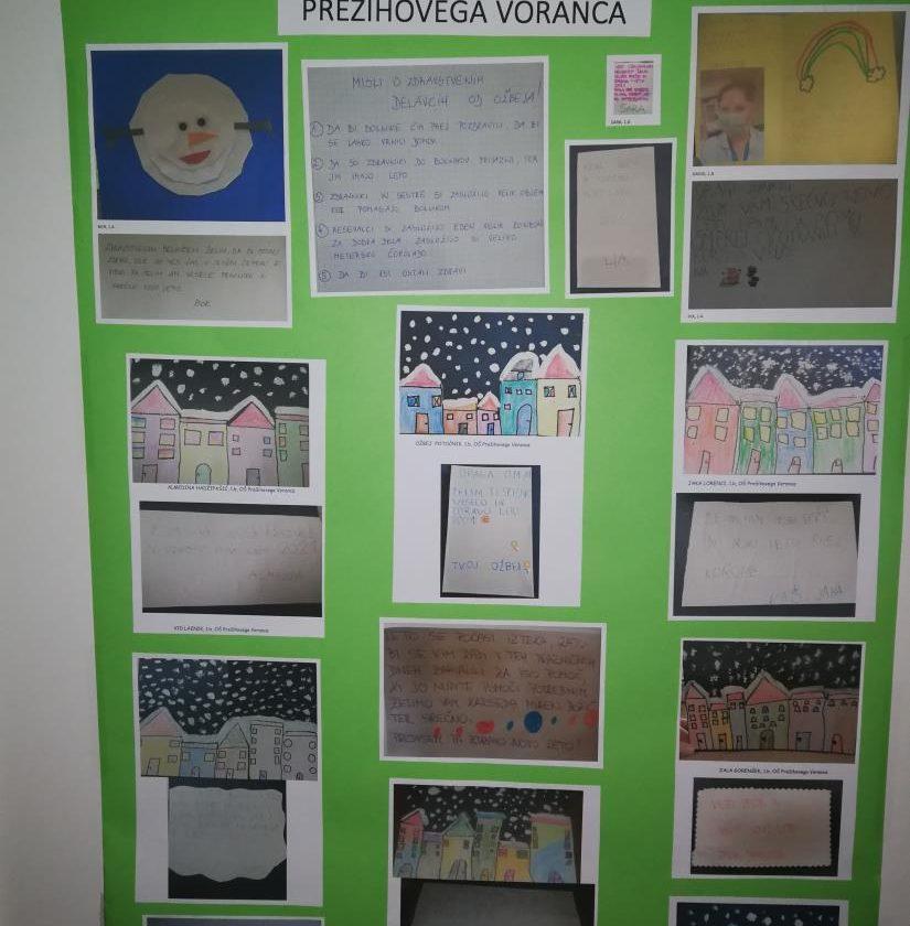 Aktivni so bili tudi prvošolci Osnovne šole Prežihovega Voranca, ki so med šolanjem na daljavo na svoje voščilnice narisali in zapisali dobre želje. Zaposlena na šoli je oblikovala plakate, ki so namenjeni delavcem in obolelim Zdravstvenega doma Ravne na Koroškem in Zdravstveno reševalnemu centru Koroške.