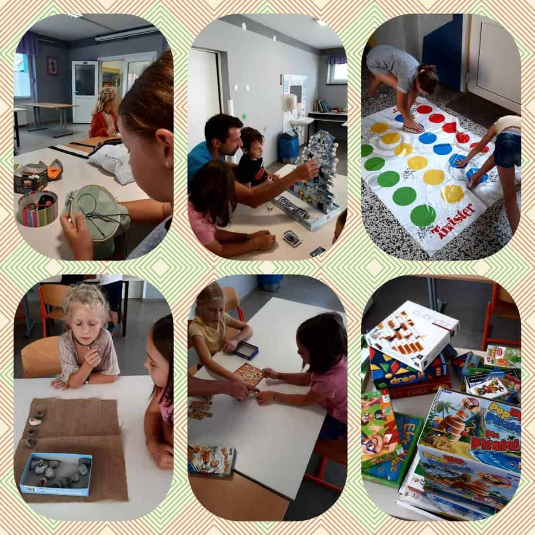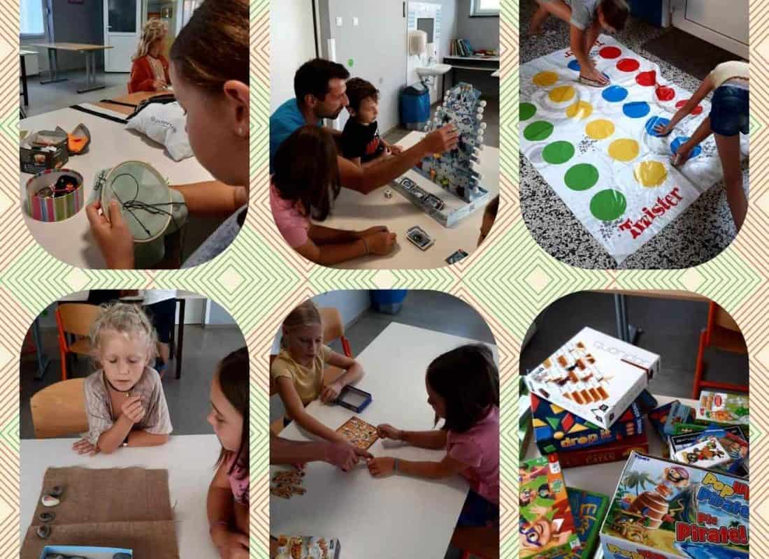 V četrtek je na obisk k Razigranemu poletju na Ravnah prišel KUL LUDEK z družabnimi igrami in z otroki preživel 2 uri. Ta dan so nabrali tudi kamenčke, na njih narisali simbole ter si tako izdelali didaktično igro »PRIPOVEDUJ MI ZGODBICO«, ki spodbuja otrokov jezikovni razvoj. Izdelali so si tudi zapestnice in obeske za ključe ter z barvnimi nitkami vezli na prtičke.