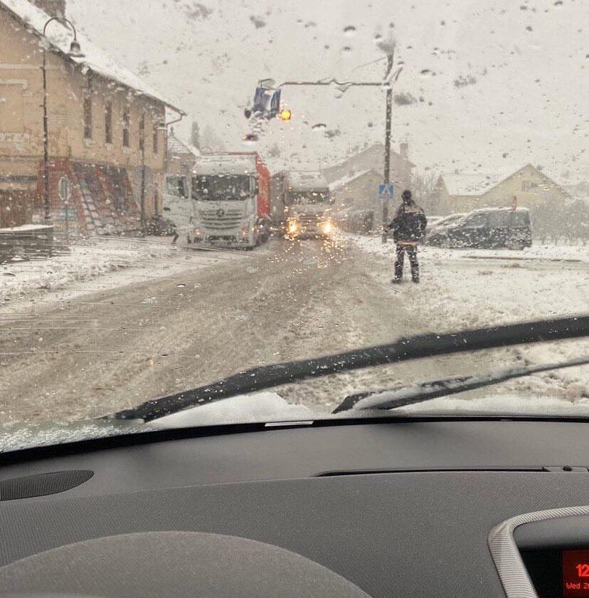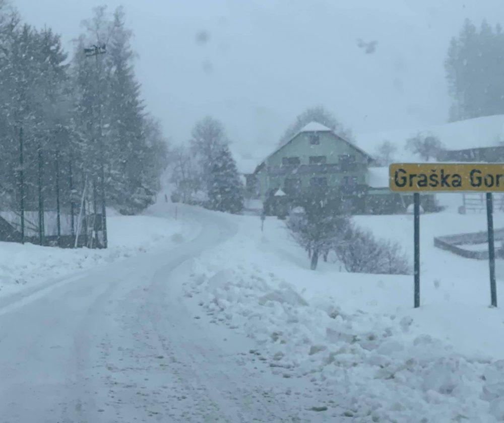 - Slabo prevozna cesta Velenje – Slovenj Gradec via Graška gora. Slabih 15cm mokrega snega. Cesta iz velenjske strani ni splužena, pazljivo!