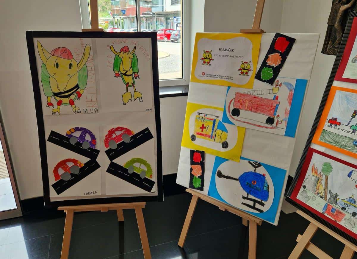 V letošnjem šolskem letu ponovno sodelujejo učenke in učenci prvih in drugih razredov Osnovne šole Koroški jeklarji ter POŠ Kotlje, ki so v avli Občine Ravne na Koroškem skupaj s svojimi mentorji pripravili razstavo risbic in sporočil, ki opozarjajo, kako pomembno je, da je vedno zapet pas v avtomobilu.
