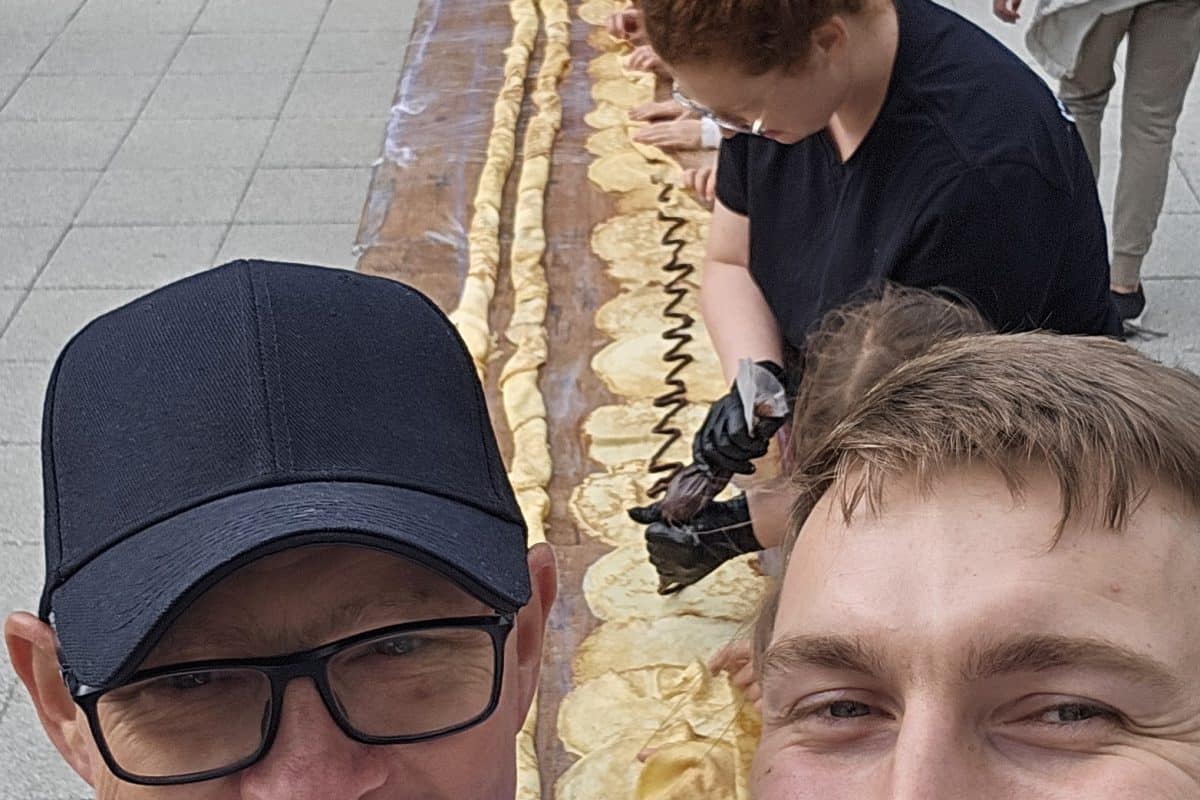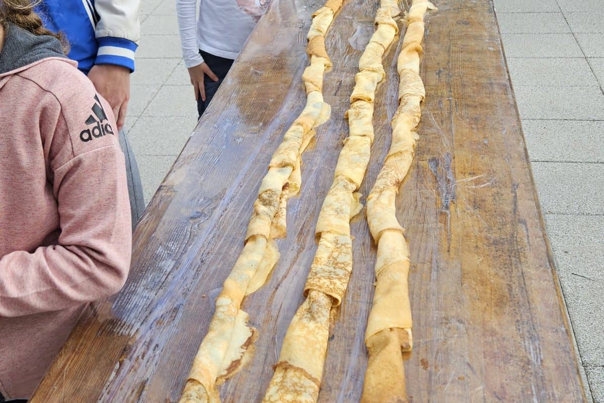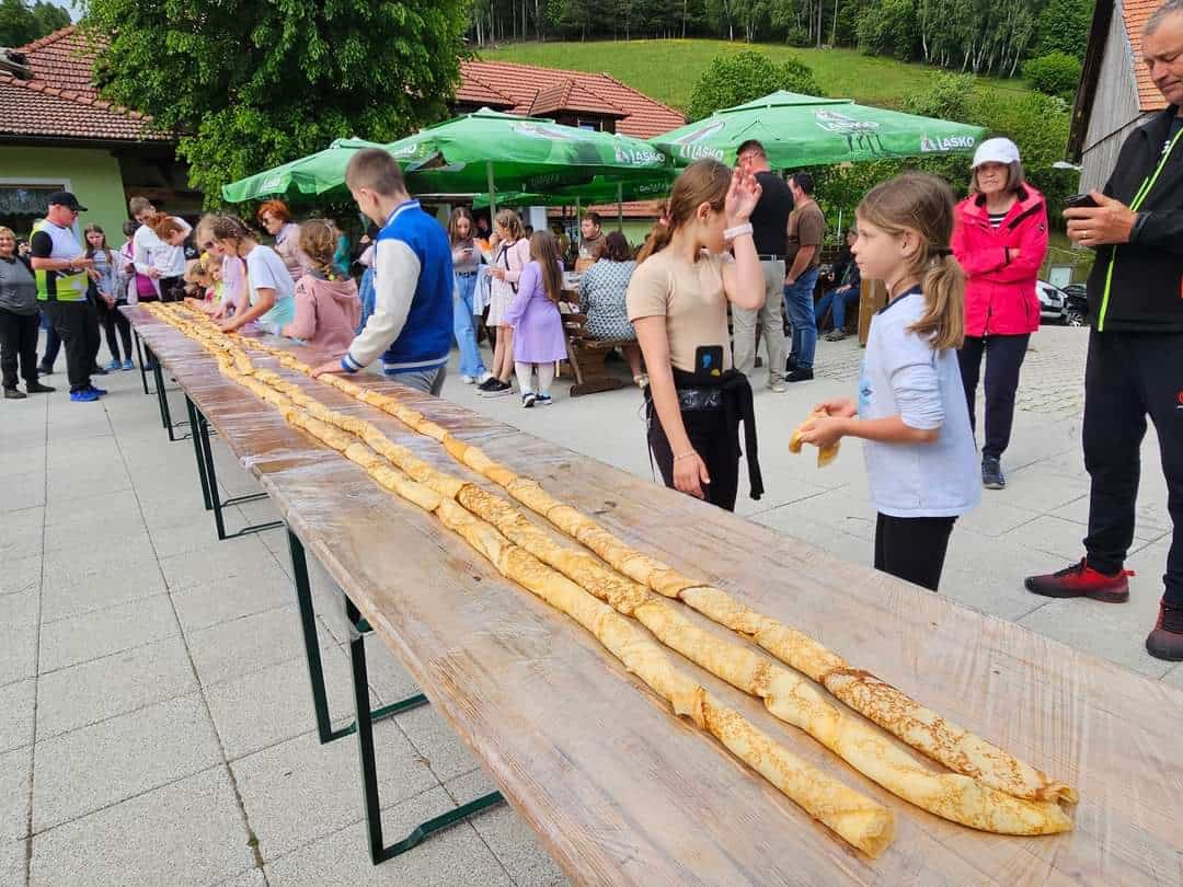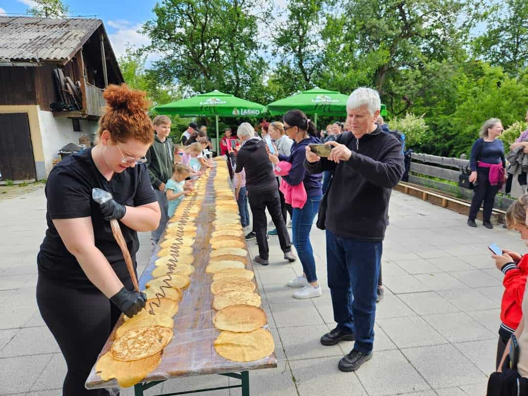 S polnimi trebuščki so se odpravili na bližnji piknik prostor, kjer je pod vodstvom M-fit centra potekala vadba. Medtem je ekipa Ščepec Vanje pripravila največjo brezglutensko palačinko na svetu ob pomoči nadobudnih otrok, dolgo približno 30 metrov. Čeprav je palačinka hitro izginila s krožnikov, udeleženci, ki so se zbrali ob mednarodnem dnevu celiakije, verjamejo, da gre za največjo brezglutensko palačinko doslej. Kljub temu, ker ni bilo uradne komisije z uradnim metrom, se ne more zapisati v knjigo rekordov.