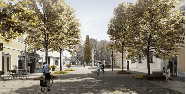 postavil pešce in kolesarje, umestitev enotne urbane opreme ter programska usmeritev, ki bo