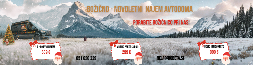 Tudi letos dokazujejo, da razumejo želje sodobnih popotnikov. Robeta ponuja fleksibilnost, udobje, dostopnost in dodatno praznično noto, ki zimskemu času dodaja toplino. S tremi ugodnimi paketi najema je zimska sezona 2025/2026 odlična priložnost, da praznike preživite na kolesih, v objemu narave, mestnih luči ali snežnih strmin.