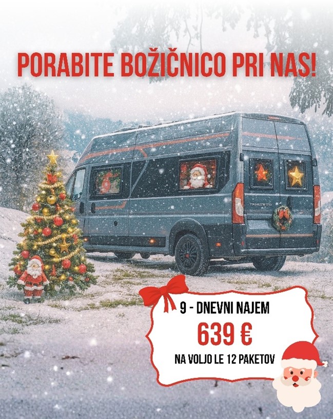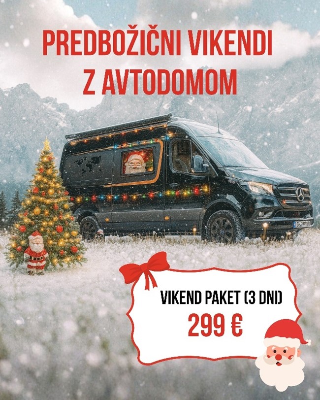 Za vse, ki si želite decembrsko vzdušje doživeti brez hotelskih omejitev, je Robeta pripravila posebno predbožično ponudbo vikend najema avtodoma. Paket, ki traja od petka do ponedeljka, je na voljo po ceni 299 EUR in vključuje tri nočitve.