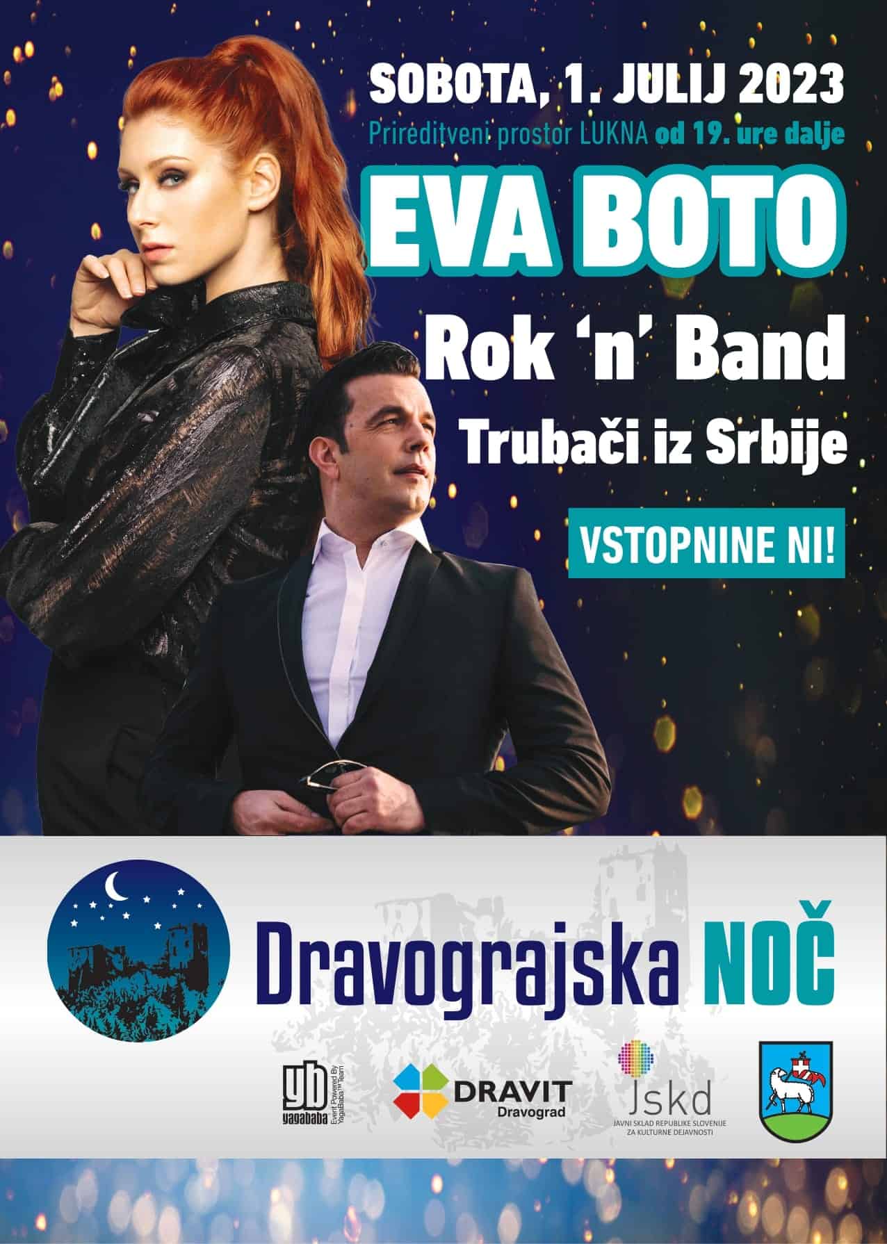 Danes, 1. julija 2023 nas pred cerkvijo sv. Vida v popoldanskem času, od 17. ure naprej, čaka že 15. Festival malih inštrumentalnih skupin. Od 19. ure dalje pa bo potekala nepozabna Dravograjska noč. Za glasbo in zabavo bodo najprej poskrbeli trobilni sestavi iz Slovenije in trubači iz Srbije, kasneje pa Eva Boto in Rok’n’Band.