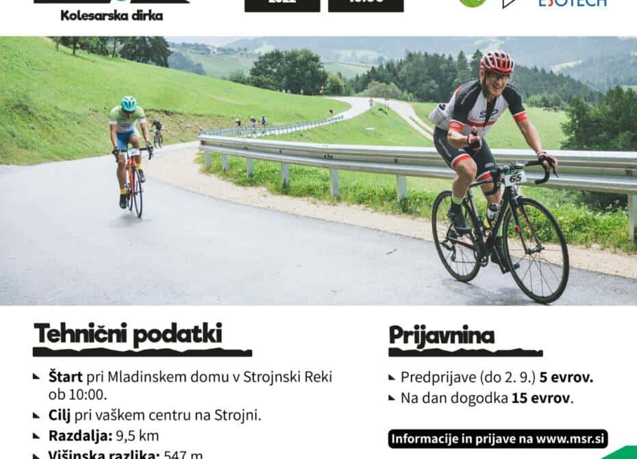 Prijaviti se bo sicer mogoče še na dan dirke, 4. septembra 2022, od 8:30 do 9:30 pri prijavni službi na lokaciji Mladinskega doma v Strojnski reki. Promocijska cena udeležbe, ki vključuje sodelovanje na dirki, malico, pijačo, spominsko majico in druženje, znaša v predprijavah 5 €, na dan dogodka bo cena 15 €.