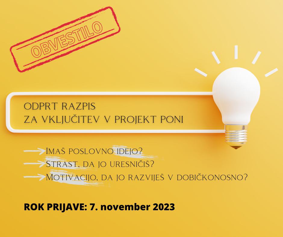 Projekt PONI Koroška 2023 je model podjetniškega usposabljanja, v okviru katerega potencialni podjetniki v 4 mesecih razvijejo in realizirajo svojo podjetniško idejo. To se doseže skozi celostni program podjetniških usposabljanj, skozi mentorstvo in nudenje vsestranske pomoči udeležencem pri uresničevanju njihovih poslovnih idej. Posebnost projekta predstavlja zaposlitev udeležencev za čas trajanja programa na RRA Koroška, kar udeležencem omogoča ne le finančno podporo pri razvoju njihovih poslovnih idej, ampak tudi čas, ki ga lahko udeleženci namenijo izključno pridobivanju novih znanj, izkušenj in pripravi na vstop na samostojno podjetniško pot.
