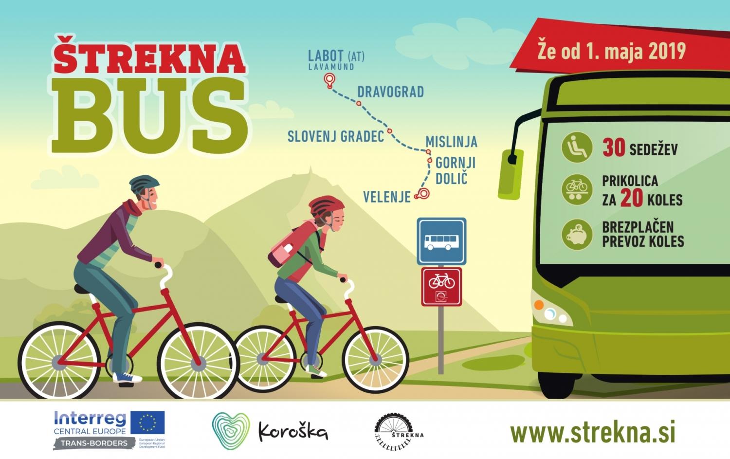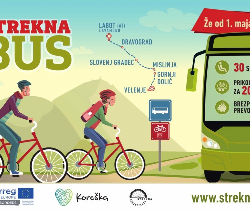Štrekna bus bo trideset sedežni avtobus s prikolico za dvajset koles. Vozil bo na relaciji med Velenjem, Gornjim Doličem, Mislinjo, Slovenj Gradcem, Otiškim Vrhom, Dravogradom ter kopalnim jezerom v Labotu (Lavamünd) na avstrijski strani. V poletnih mesecih, juliju in avgustu, bo vozil dvakrat dnevno vsak dan, v maju, juniju in septembru pa ob vikendih in praznikih – slovenskih in avstrijskih. Prve vožnje se obetajo že 1. in 2. ter 4. in 5. maja.