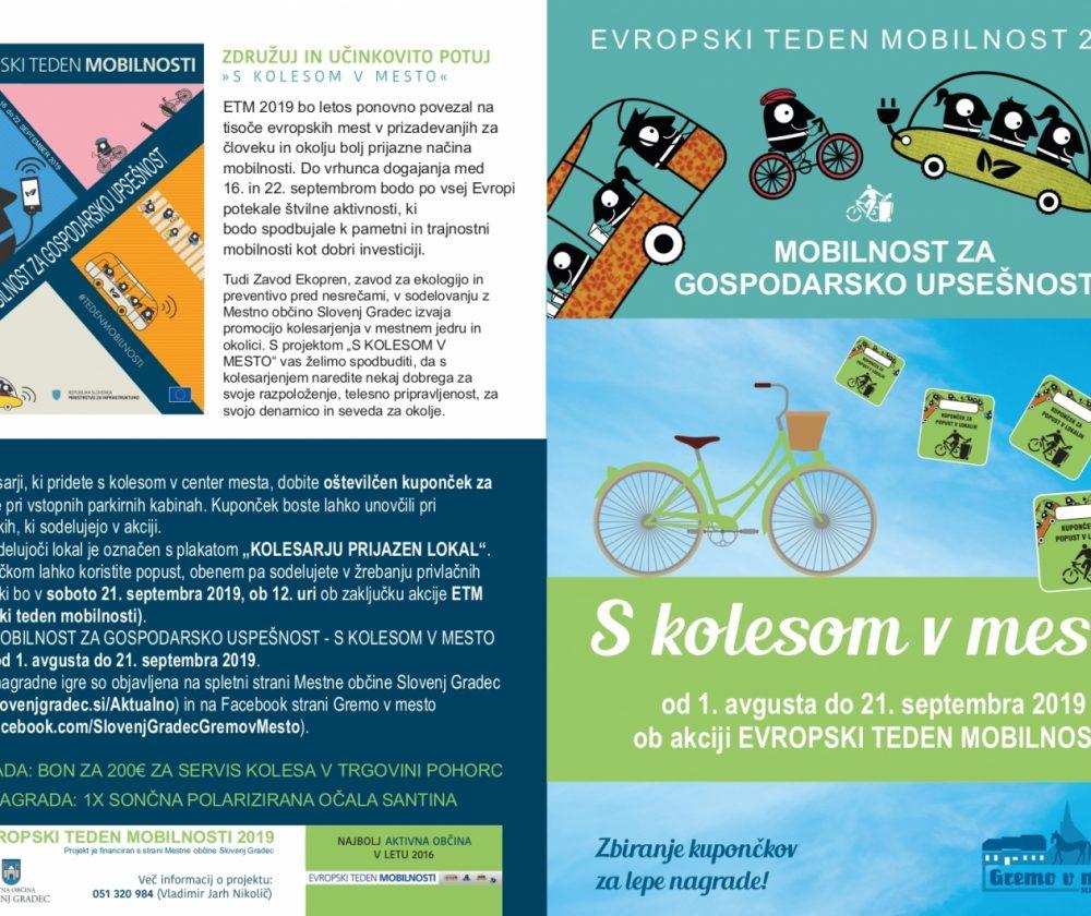 Zavod EKOPREN si v sodelovanju z društvoma raum AU in Varno aktivnih poti ter z Mestno občino Slovenj Gradec, prizadeva za človeku in okolju bolj prijazne načine mobilnosti. V sklopu Evropskega tedna mobilnosti (ETM) bodo v Slovenj Gradcu izvedli dvomesečno akcijo “S kolesom v mesto”, pri kateri sodeluje kar 50 gostinskih in drugih lokalov.
